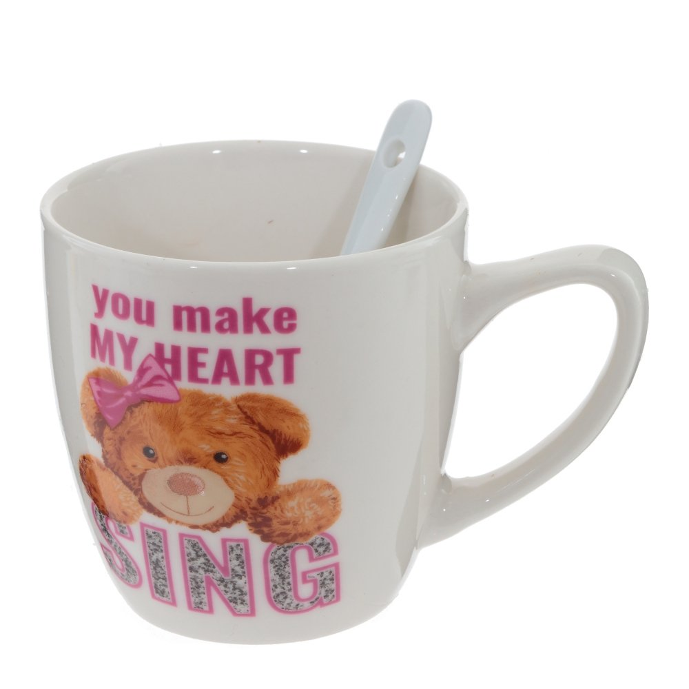 Кружка с ложкой, 200 мл, L11 W7 H8,5 см, 4в.
