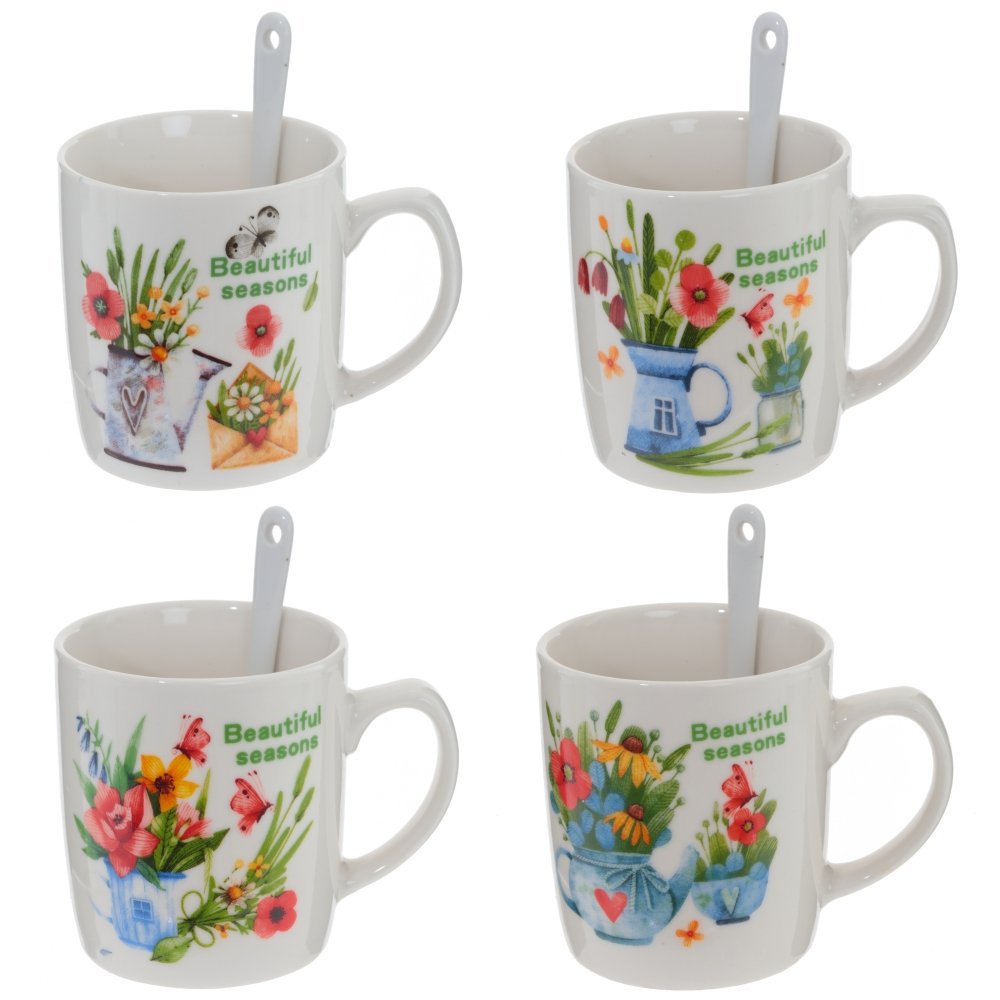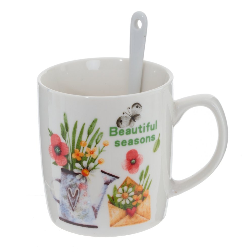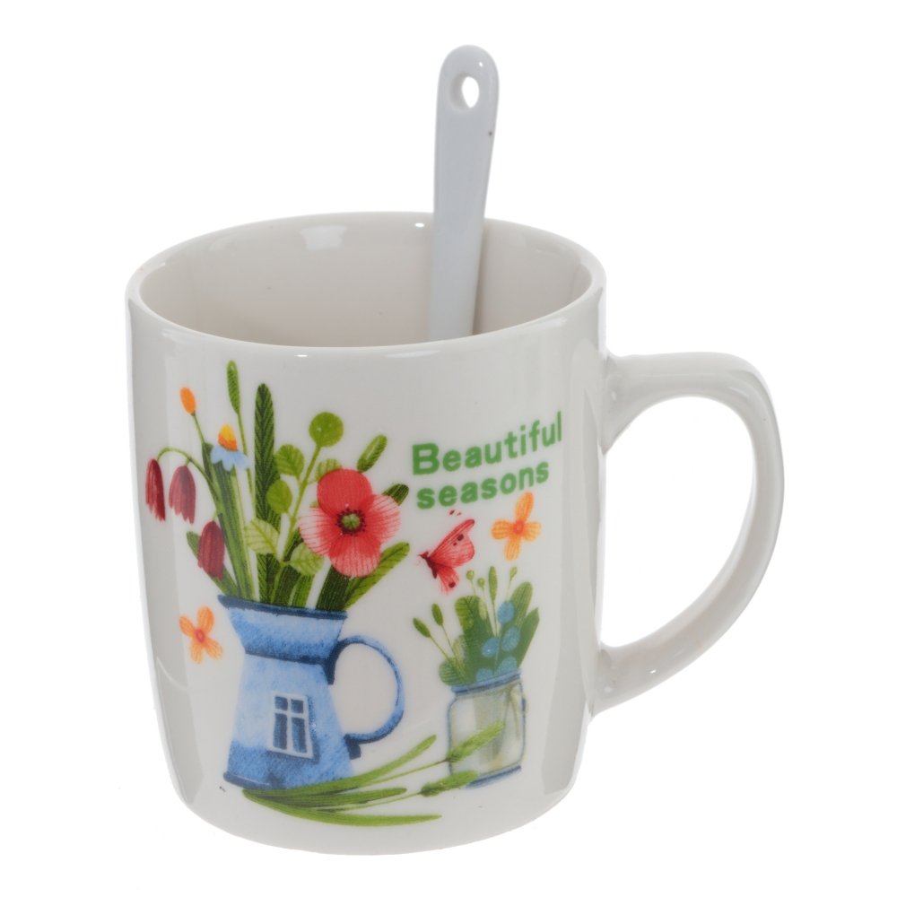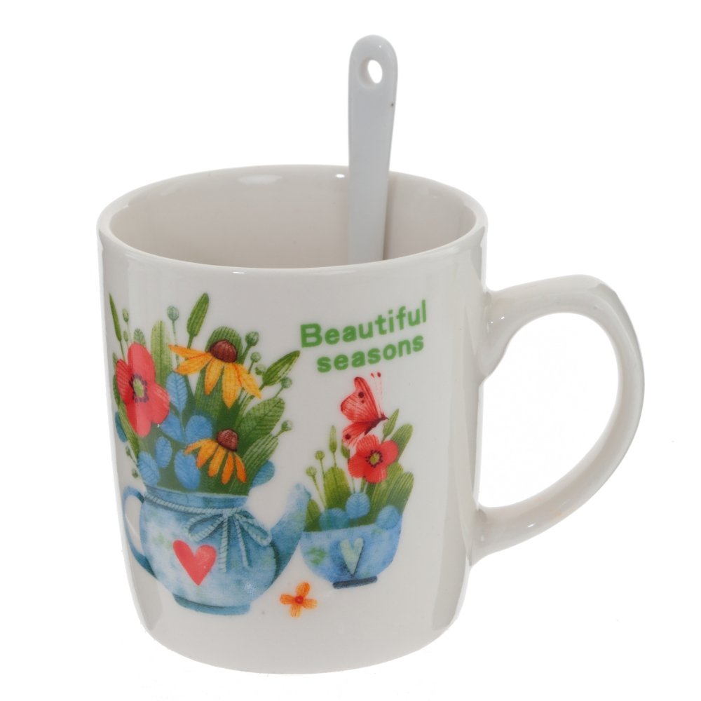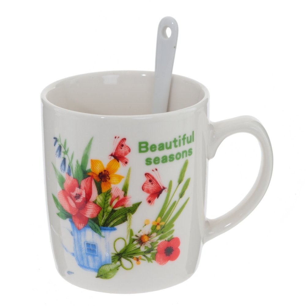 Кружка с ложкой, 200 мл, L10 W7 H8,5 см, 4в.