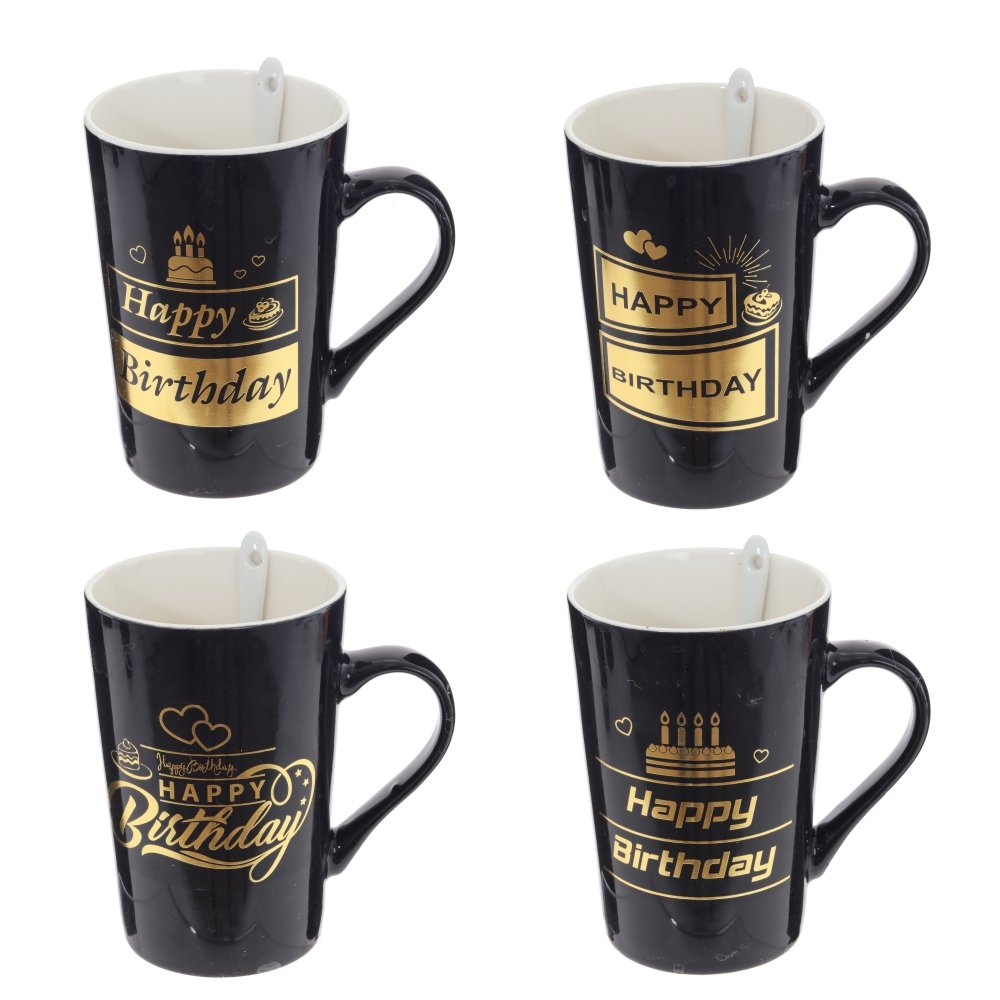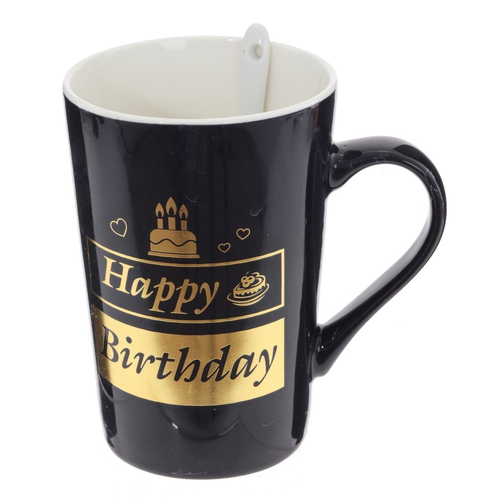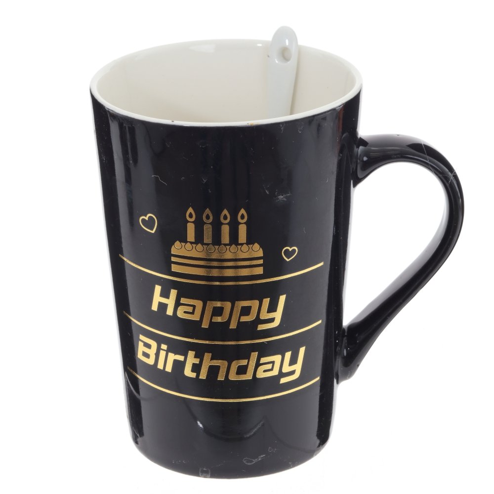Кружка с ложкой, 500 мл, L12 W8 H13 см, 4в.