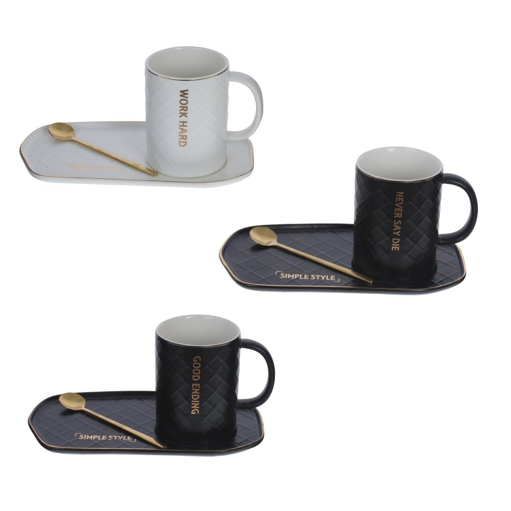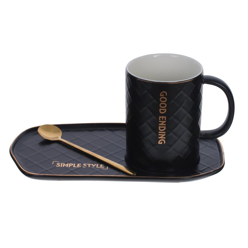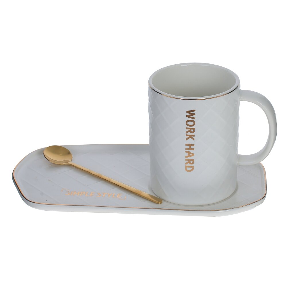 Кружка с ложкой на подставке, 400 мл, L23 W13 H10,5 см, 3в.
