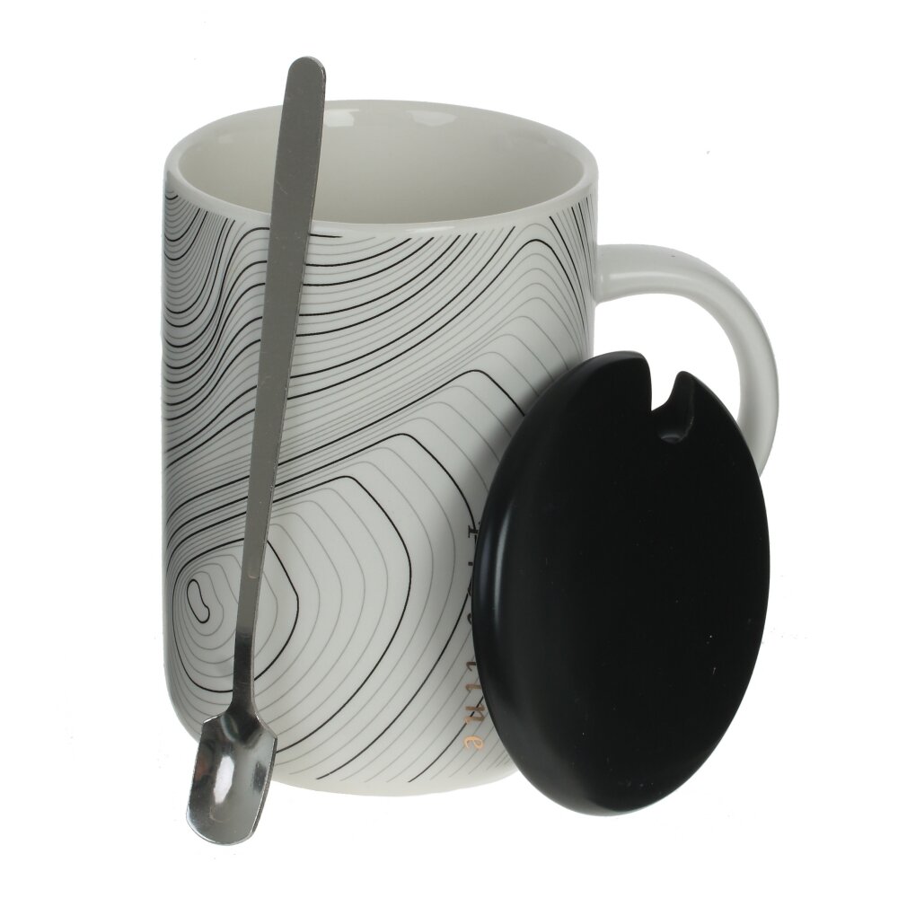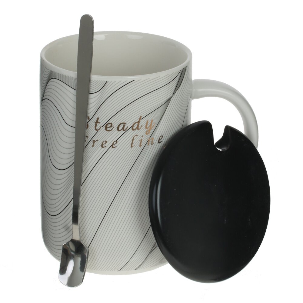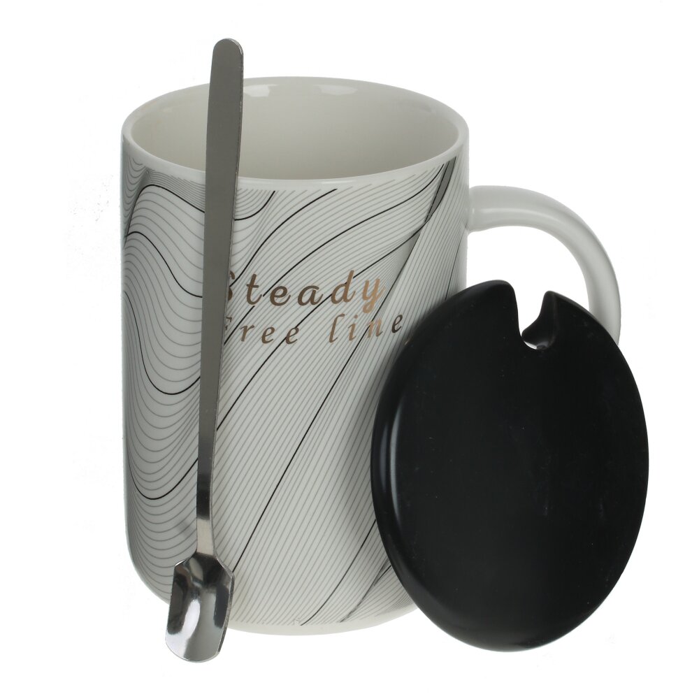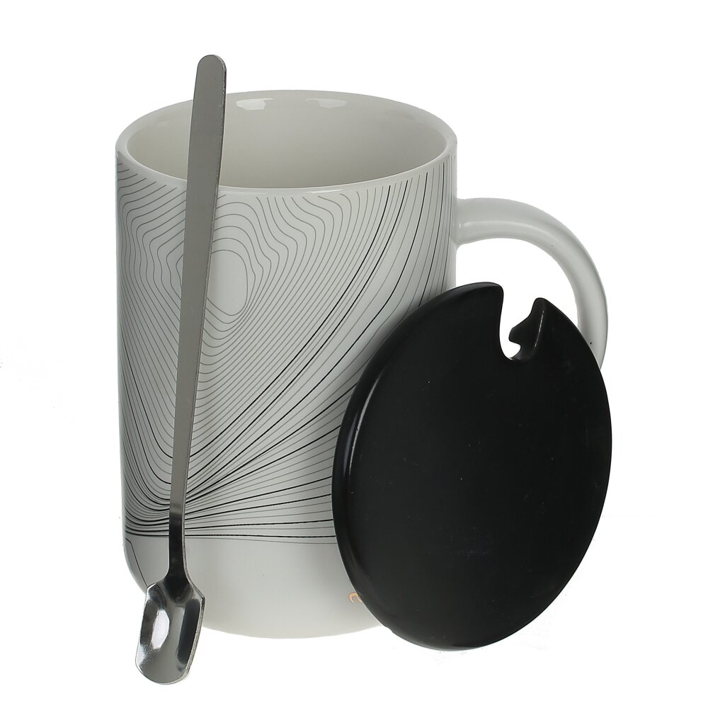 Кружка с крышкой и ложкой, 400 мл, l12 w8 h11,5 см, 4в..