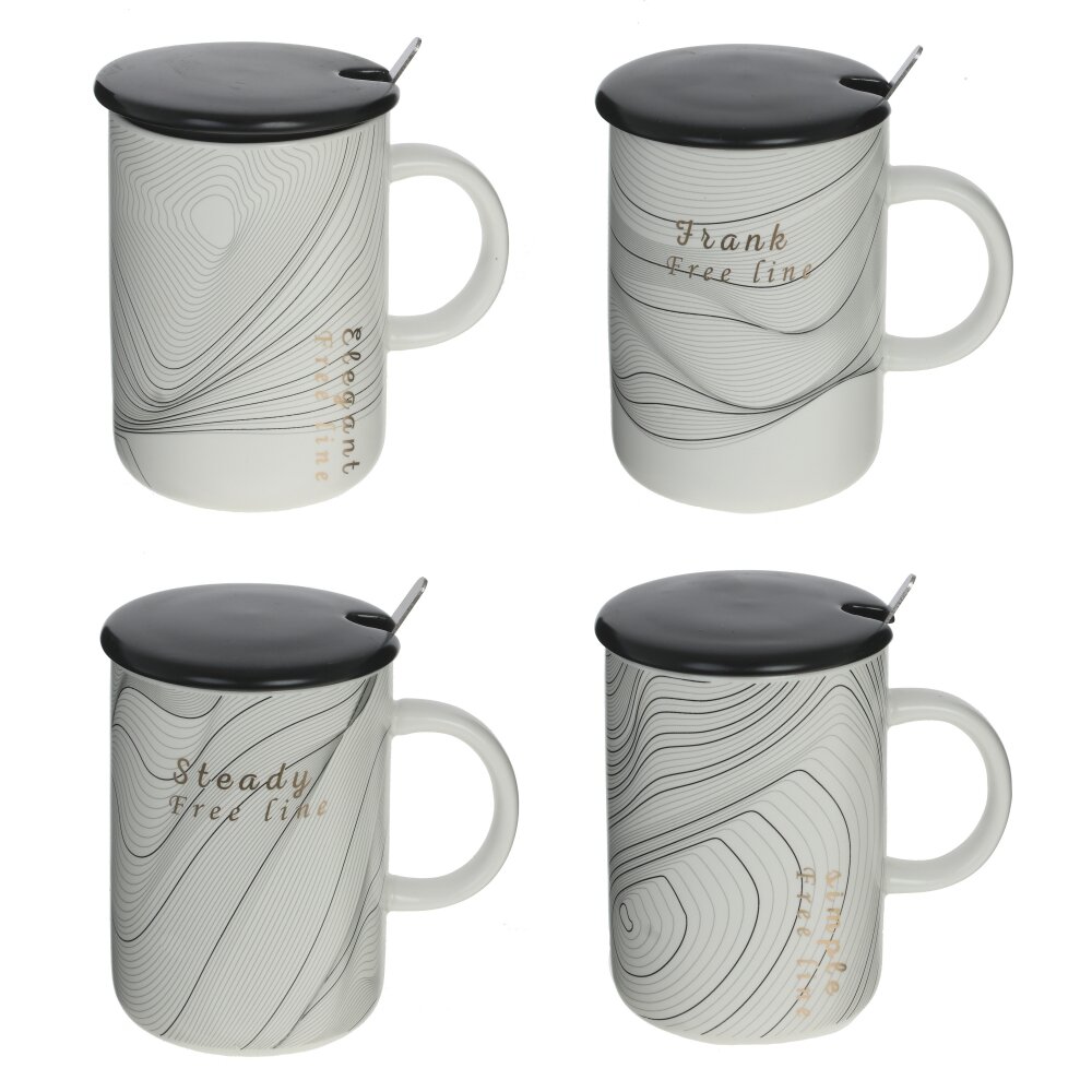Кружка с крышкой и ложкой, 400 мл, L12 W8 H11,5 см, 4в.