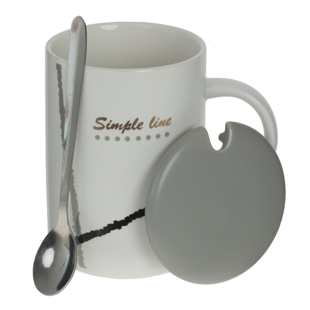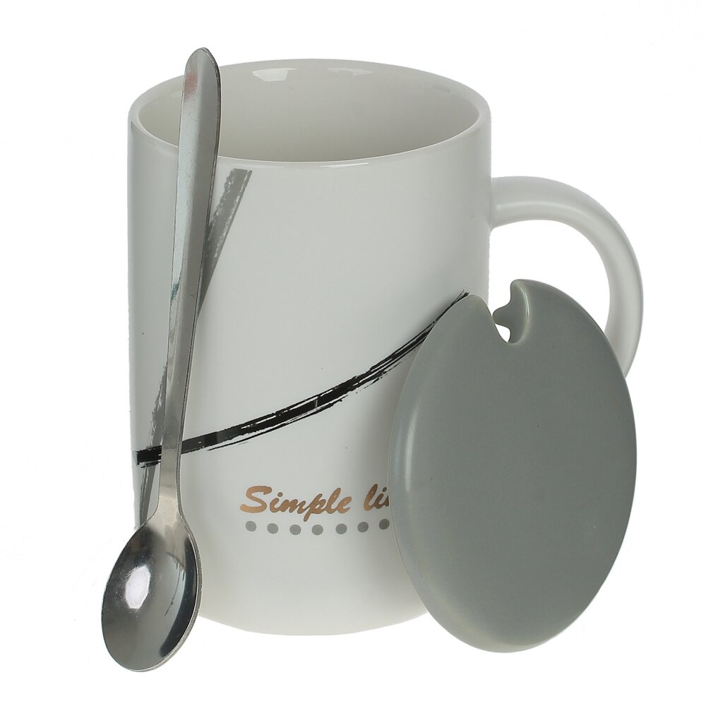 Кружка с крышкой и ложкой, 400 мл, L12 W8 H11,5 см, 4в.