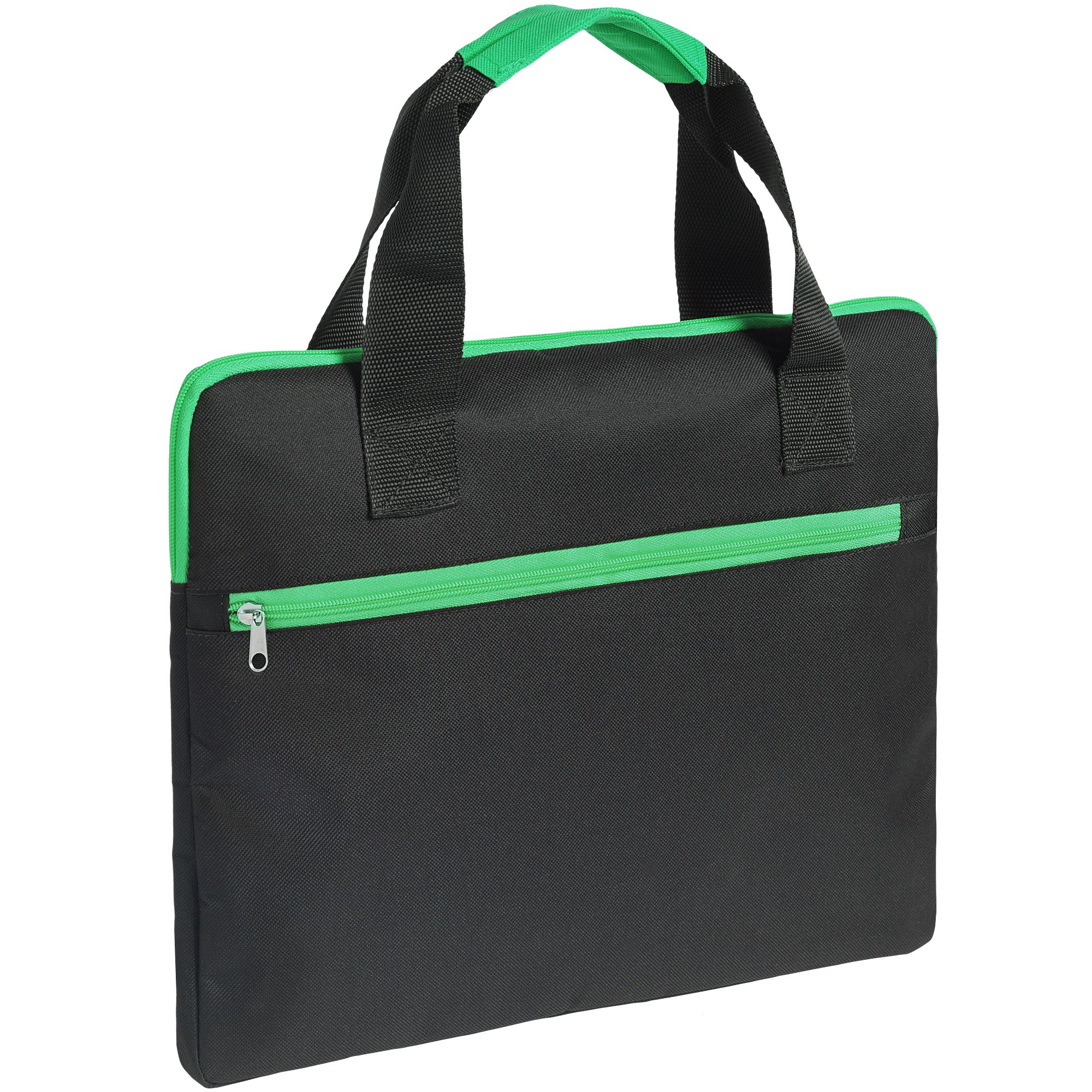 Конференц-сумка Unit сontour, черная с зеленой отделкой