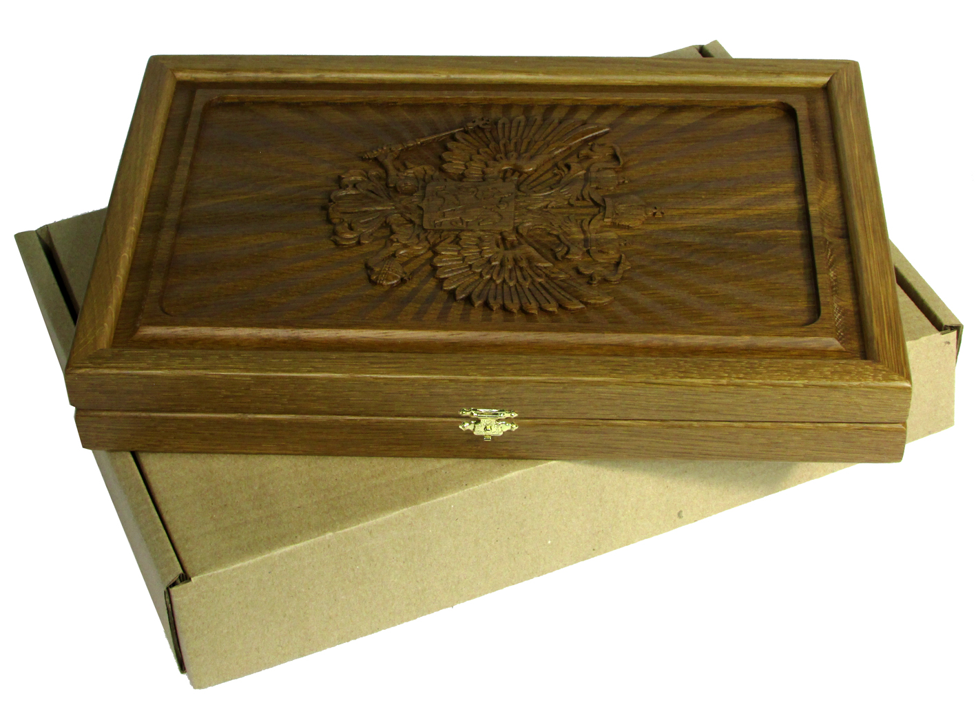 Резные дорожные нарды из массива мореного дуба "россия" 36х46. Артикул: [76-14] Наименование: Резные дорожные нарды из массива мореного дуба Россия Размер: 36 х 46 см Описание: Материал: Дуб Технология: Резьба по массивуОдна из лучших досок дорожного размера. Размер не самый маленький (встречаются нарды и меньших размеров), однако нашей целью было создать нарды минимального из УДОБНЫХ размеров. Эта доска соответствует всем основным запросам любителей игры в нарды: - Деревянные фишки из массива граба с углублением по центру легко перемещаются пальцами. Диаметр фишки 19 мм - Возможность выставить все фишки вдоль края поля, что важно при игре в длинные нарды - Удобные ячейки из массива мореного дуба - Ложемент для хранения фишек и костей по краю поля С внешней стороны на лицевой филенке вырезан герб России. На оборотной филенке вырезана доска для игры в шашки. Упаковка: транспортная картонная коробка. ВАЖНО: Нарды будут иметь такой же резной рисунок, у них будет такая же фурнитура и точно так же будут выделены стрелки на поле, НО рисунок дерева неповторим. Поэтому Вы не сможете получить точно такие же нарды, как на сайте. Для того, чтобы игра в нарды доставила Вам еще большее удовольствие, предлагаем заменить фишки штатной комплектации на изысканные фишки из экзотического самшита и золотистого розового дерева, диаметром 19 мм, которые помогут дополнить эту игру еще и замечательным звучанием драгоценных пород деревьев.