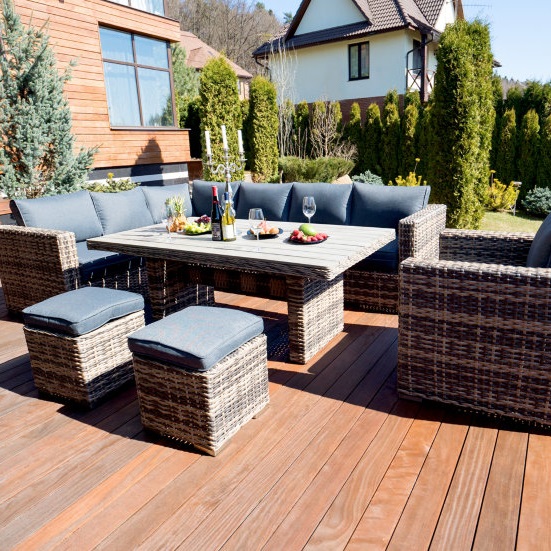Лаунж зона lite sanremo, садовая мебель. Комплект мебели из искусственного ротанга с легкостью выдерживает любые погодные условия. Каркас изготовлен из nbsp алюминия, что придает мебели долговечность и прочность. nbsp В комплект входит 1 обеденный стол, 1 угловой диван с подушками, 1 кресло с подлокотниками и подушками, 2 пуфика с мягкими подушками. Кресло, см 94 X 92 X 70 Обеденный стол, см 180 X 105 X 70 Левый диванный модуль, см 223 X 92 X 70 Правый диванный модуль, см 210 X 92 X 70 Пуфик, см 45 X 45 X 40
