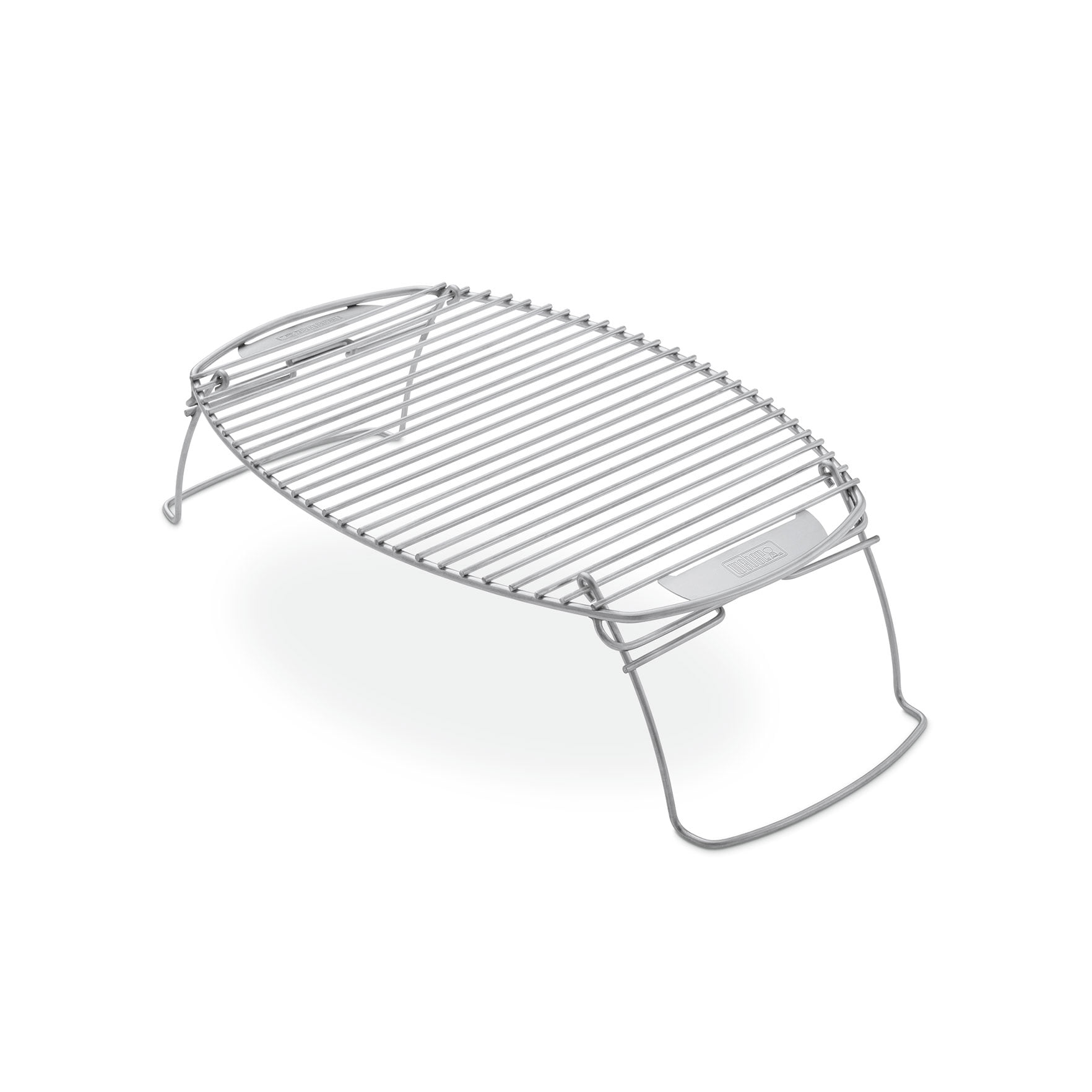 Решетка второго уровня для гриля Weber существенно увеличивает возможности приготовления. Большая площадь решетки позволяет разместить на ней много продуктов, а высота ножек достаточна, чтобы готовить на под ней даже крупные куски мяса. Складные ножки обеспечивают стабильность решетки во время приготовления и экономят место для хранения.