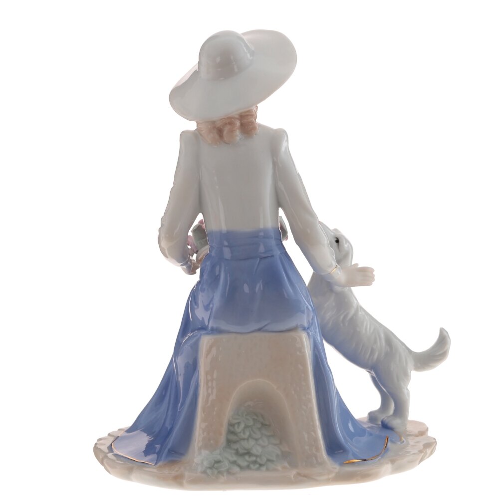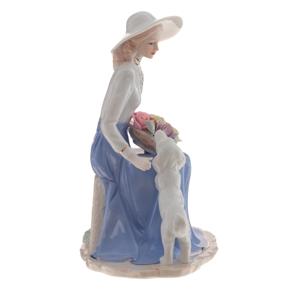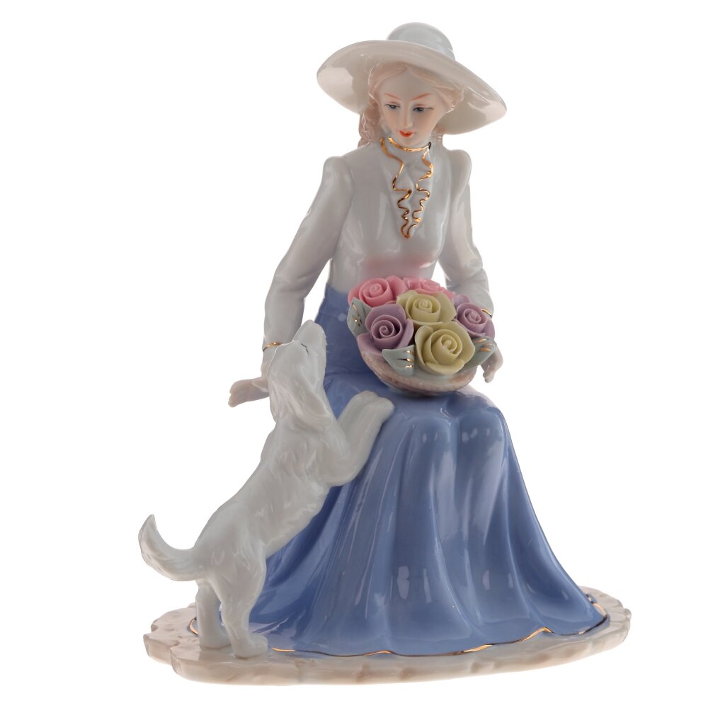 Фигурка декоративная дама с собачкой, L17 W12 H21 см