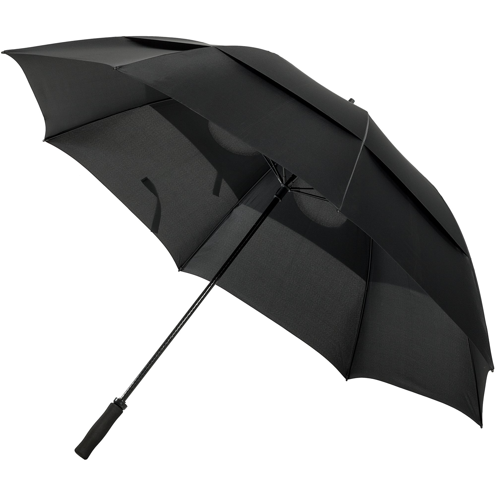 Зонт-трость oldcourse, черный. Размеры длина 110 см, диаметр купола 148 см Материал купол - эпонж, 210Т; каркас - стеклопластик; наконечники, топ - прорезиненный пластик; ручка - ЭВА Вес (1 шт.) 688 г Транспортная упаковка 113,0x16,5x29,0 см Вес 16,50 кг Объем упаковки 0,054 м? Количество в упаковке 24 шт. Виды нанесения D-Шелкография (2 цвета) F1-Флекс (1 цвет) По-настоящему большой зонт. Модель с двойным куполом и прочной конструкцией, которая способна выдержать проливные дожди и ураганные порывы ветра, особенно популярна среди гольфистов: под таким зонтом можно надежно укрыться от непогоды вместе со снаряжением и продолжать игру. Механический зонт, 8 спиц. Оснащен гибкими спицами с системой защиты от ветра.