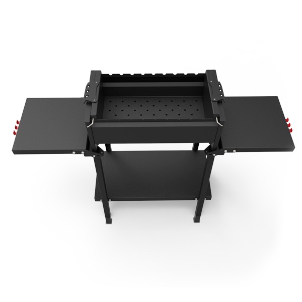 Мангал grillver kraftiks black на подставке для сада. Grillver Kraftiks Black на подставке с подъёмной жаровней, заслонками поддува и тепловым кожухом. nbsp Пространство между дном жаровни и кожухом образует воздушную камеру – поддувало. Дно жаровни перфорированное - для доступа воздуха к углям. В торцевых стенках кожуха выполнены отверстия-окна с поворотными заслонками. nbsp Топка имеет возможность вертикального перемещения, с изменением расстояния между углями и готовящимся продуктом. Фиксация топки осуществляется при помощи двух шампуров, вставляемых под выступы, расположенные на торцевых стенках. Особенности Конструкция Lift-box, позволяющая регулировать расстояние от углей до готовящейся еды. Переменная глубина жаровни – от 90 до 150 мм. 5 положений жаровни с шагом 15 мм. Двойной тепловой кожух обеспечивает тепловую изоляцию жаровни, благодаря этому угли горят дольше. nbsp nbsp Перфорированное дно топки и поддувала на боковых стенках nbsp обеспечивают доступ воздуха к углям, что облегчает их розжиг. nbsp nbsp Покрыт жаропрочной краской, которая выдерживает до +700 °C. Полностью разборная конструкция. Откидные столики. Полки для хранения. Удобная установка и снятие мангала. Сочетание теплового кожуха, перфорации дна и наличие заслонок способствует экономному расходу угля и его стабильному и спокойному горению. Мангал поставляется в сборе, полностью готовый к работе. Размеры мангала, см 134 Х 86 Х 44 Размеры топки, см 62 Х 32 Х 22 Толщина металла топки, мм 3 Толщина металла мангала, мм 2 Держатель инструментов Есть