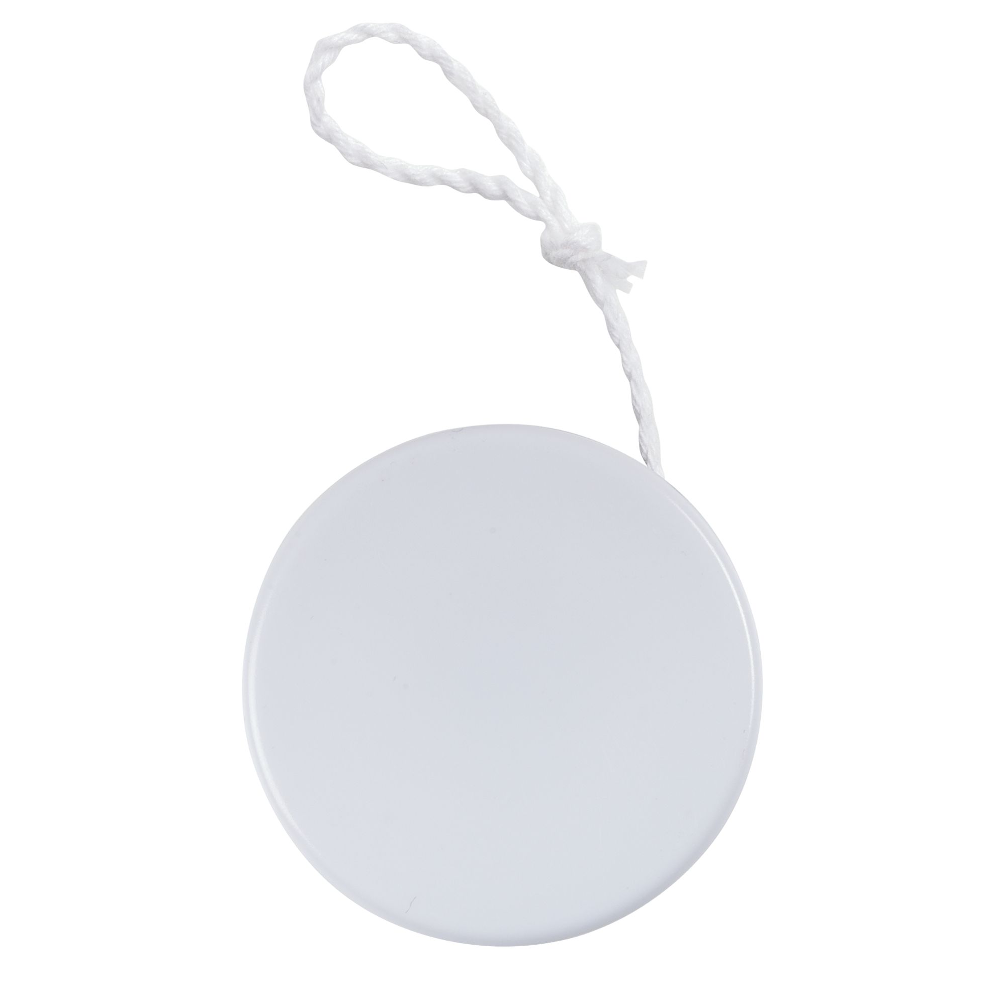 Размеры: диаметр 5 см, толщина 1,6 см, длина веревки 100 см