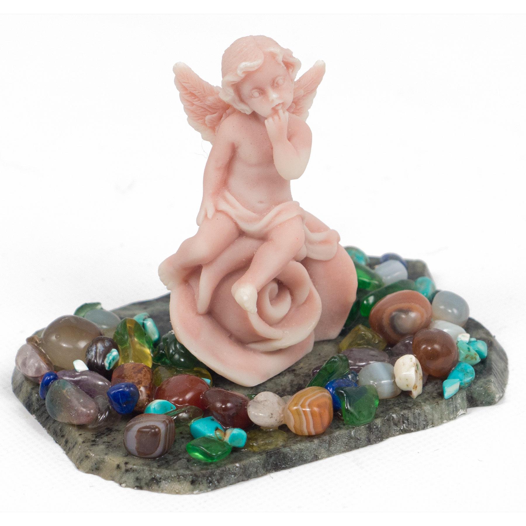 Сувенир "ангел на розе" змеевик мрамолит 85х60х65 мм 100 гр.