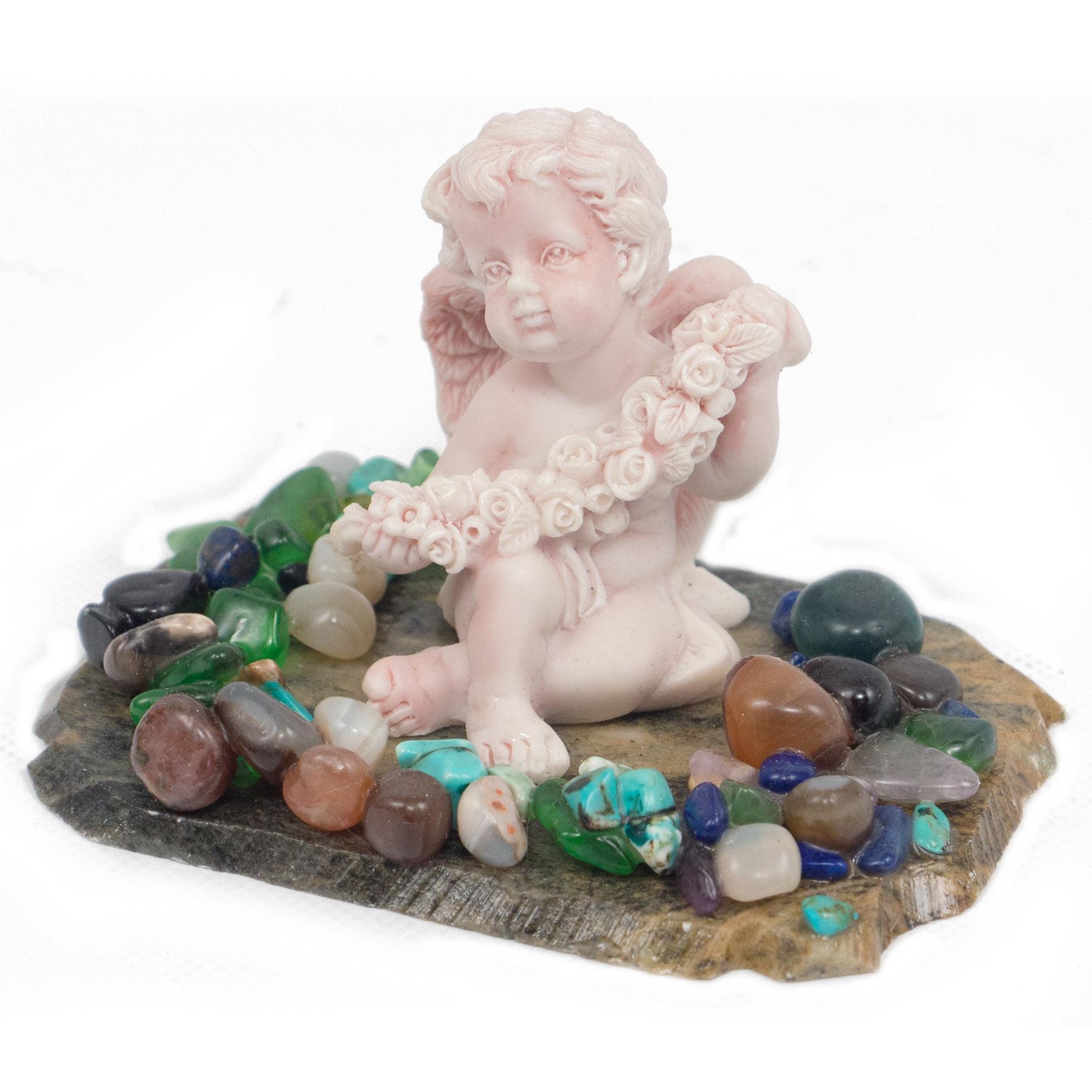 Сувенир "ангел с венком" змеевик мрамолит 85х60х50 мм 100 гр.