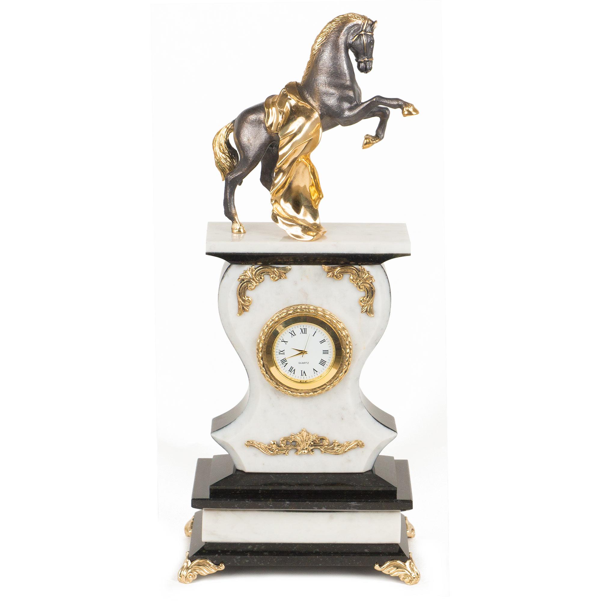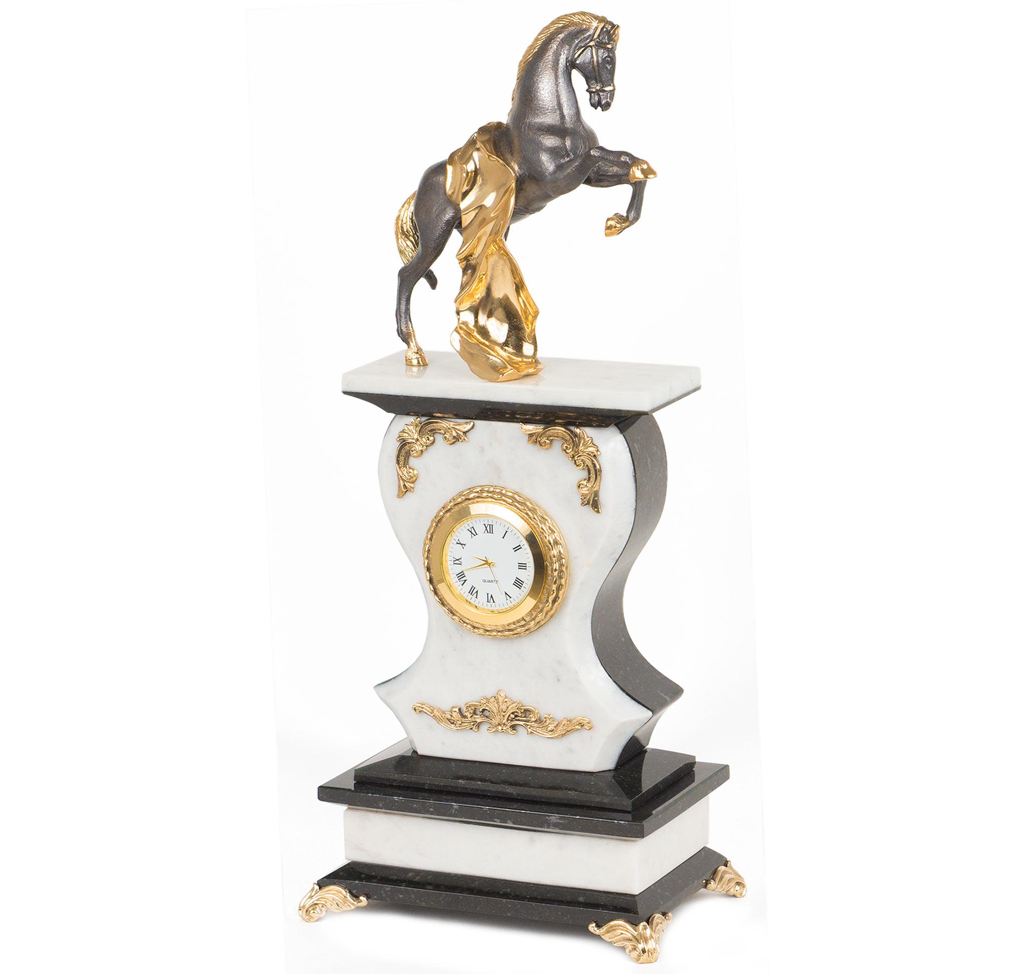 Часы "конь с попоной" мрамор змеевик бронза 140х95х330 мм 3250 г
