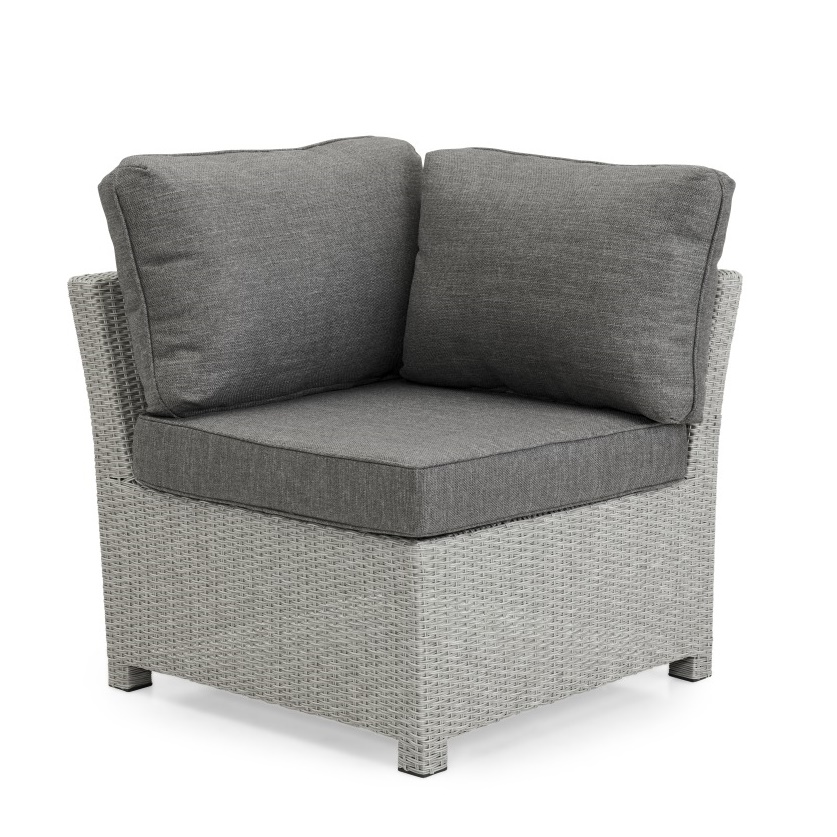 Угловой модуль brafab adams grey, садовая мебель. Диванные модули Adams выполнены из искусственного ротанга, каркас изготовлен из всепогодного алюминия. Подушки в комплекте. Размер, см 79 X 79 X 88 Материал каркаса Всепогодный алюминий Материал изделия Искусственный ротанг Страна бренда Швеция Цвет Серый