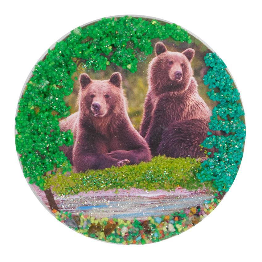Магнит с рисунком "два медведя" змеевик 110х110 мм 95 гр.