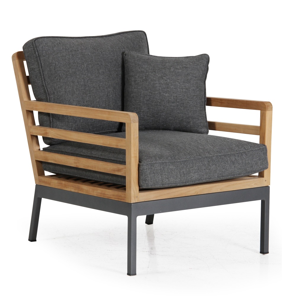 Кресло brafab zalongo relax, садовая мебель. Очень стильный люкс, в котором высококачественный тик сочетается с алюминием с антрацитовым покрытием. Прямые ребра из тикового дерева усиливают впечатление качества и элегантности. nbsp Подушка в комплекте. Размер, см 79,5 X 67 X 77 Материал каркаса Всепогодный алюминий Материал изделия Тиковое дерево Страна бренда Швеция Цвет Натуральный- Антрацит
