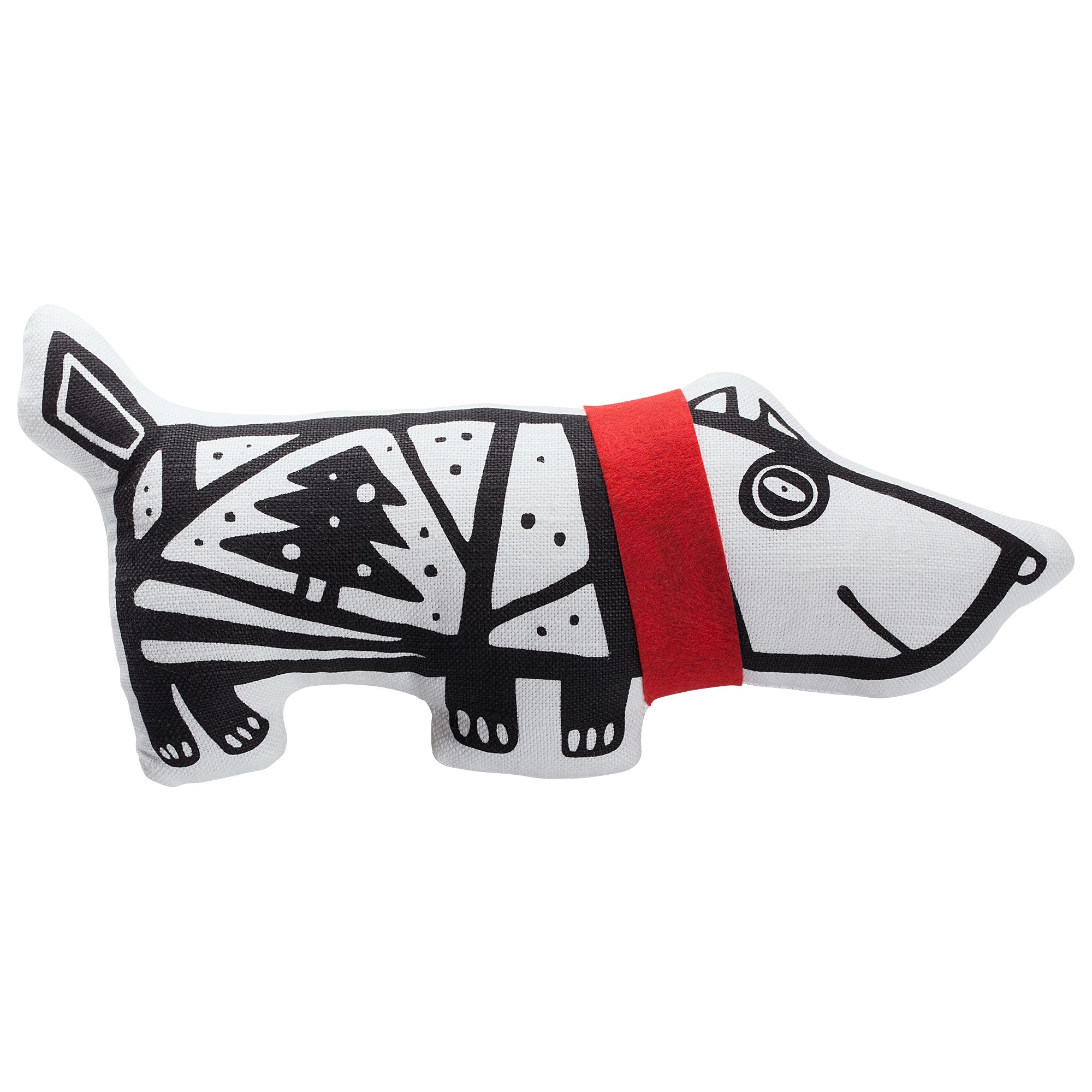 Игрушка «собака в шарфе», большая, белая с красным. Размеры 51х25 см Материал лен; наполнитель - синтепон; шарф - фетр Вес (1 шт.) 400 г Транспортная упаковка 62,0x37,5x32,0 см Вес 4,00 кг Объем упаковки 0,074 м? Количество в упаковке 10 шт. Виды нанесения D-Шелкография 150 рублей от продажи каждой подушки перечисляется проекту «Помогать легко», вся прибыль которого предназначается подопечным фонда AdVita. Режиссер, фотограф и художник Катя Шрага нарисовала «Собаку в свитере и новом шарфе» специально для благотворительного проекта «Помогать легко». Катя — большой друг фонда AdVita, который помогает людям с онкологическими заболеваниями. Вместе с выездной бригадой мультипликаторов из студии «Да» Катя придумывает сценарии и рисует новые истории с юными подопечными в больницах Санкт-Петербурга. Творчество играет важную роль в оказании психологической поддержки ребенку, на долю которого выпали непростые испытания. Результаты детского творчества воплощаются в сувенирах проекта «Помогать легко», прибыль от продажи которых перечисляется в «Адвиту». «Собака в свитере и новом шарфе» стала визитной карточкой петербургского благотворительного проекта, а эта интерьерная подушка — еще один способ помочь тем, кто в этом нуждается.