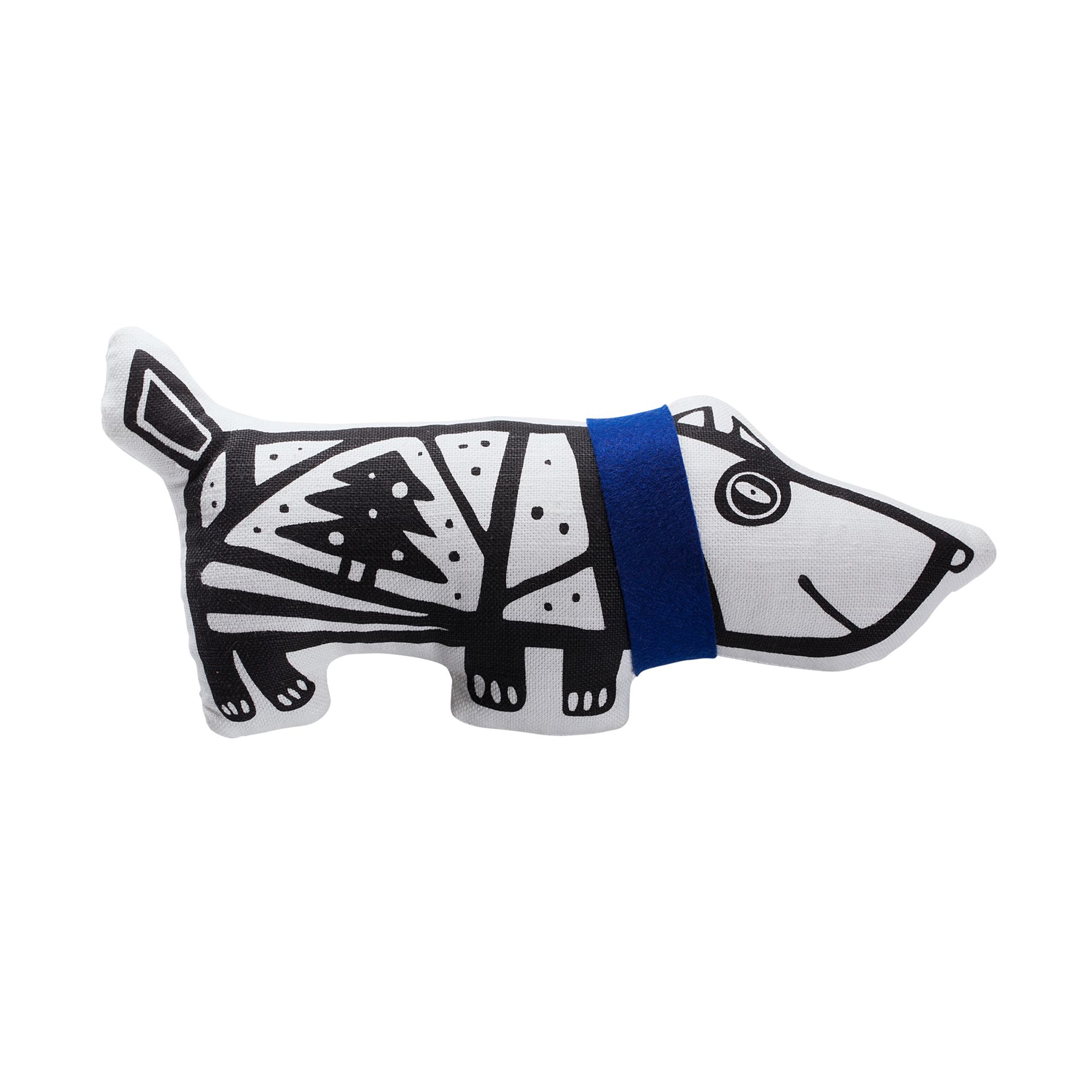 Игрушка «собака в шарфе», малая, белая с синим. Размеры 30*14 см Материал лен; наполнитель - синтепон; шарф - фетр Вес (1 шт.) 116 г Транспортная упаковка 62,0x37,5x32,0 см Вес 5,80 кг Объем упаковки 0,074 м? Количество в упаковке 50 шт. Виды нанесения D-Шелкография 100 рублей от продажи каждой подушки перечисляется проекту «Помогать легко», вся прибыль которого предназначается подопечным фонда AdVita. Режиссер, фотограф и художник Катя Шрага нарисовала «Собаку в свитере и новом шарфе» специально для благотворительного проекта «Помогать легко». Катя — большой друг фонда AdVita, который помогает людям с онкологическими заболеваниями. Вместе с выездной бригадой мультипликаторов из студии «Да» Катя придумывает сценарии и рисует новые истории с юными подопечными в больницах Санкт-Петербурга. Творчество играет важную роль в оказании психологической поддержки ребенку, на долю которого выпали непростые испытания. Результаты детского творчества воплощаются в сувенирах проекта «Помогать легко», прибыль от продажи которых перечисляется в «Адвиту». «Собака в свитере и новом шарфе» стала визитной карточкой петербургского благотворительного проекта, а эта интерьерная подушка — еще один способ помочь тем, кто в этом нуждается.
