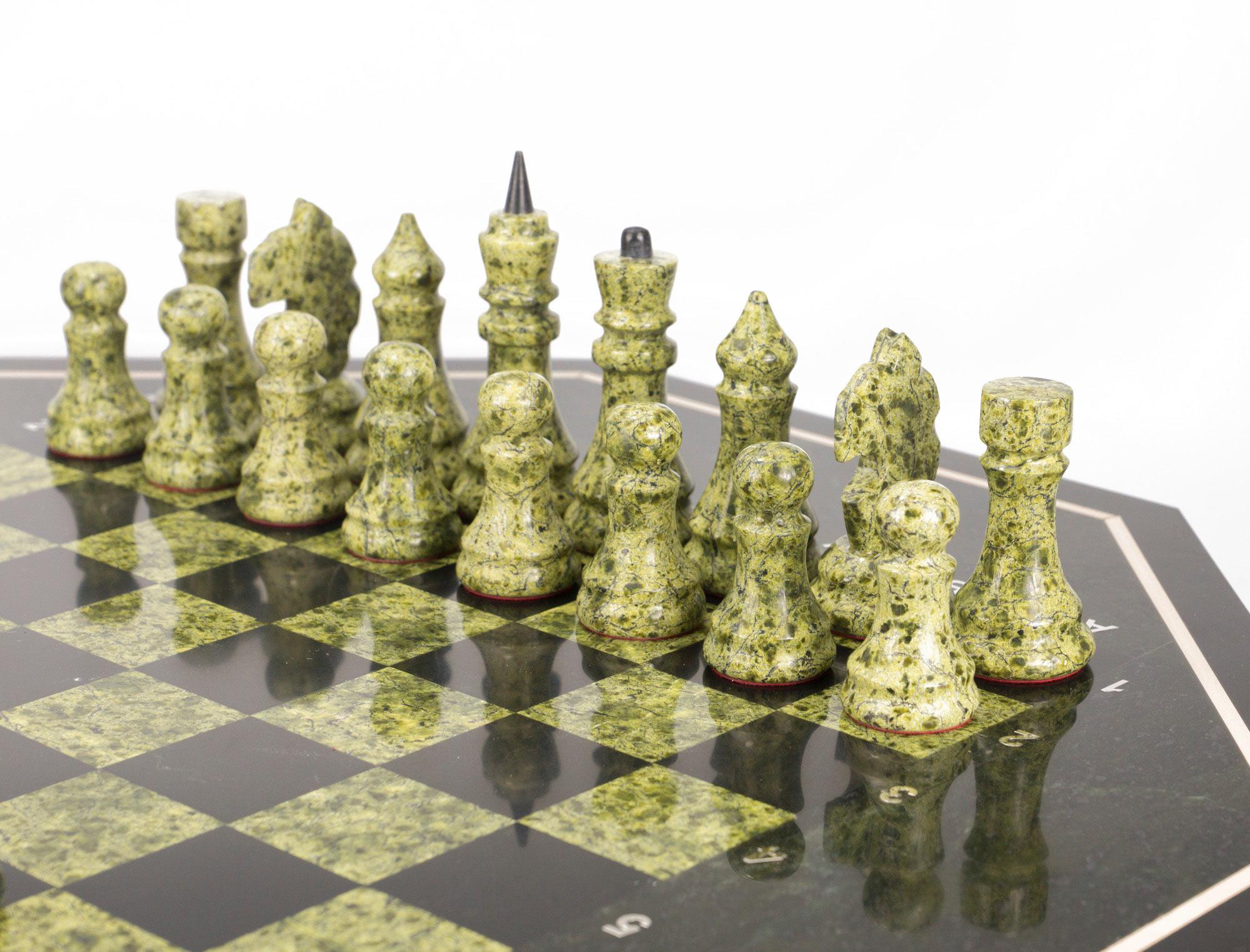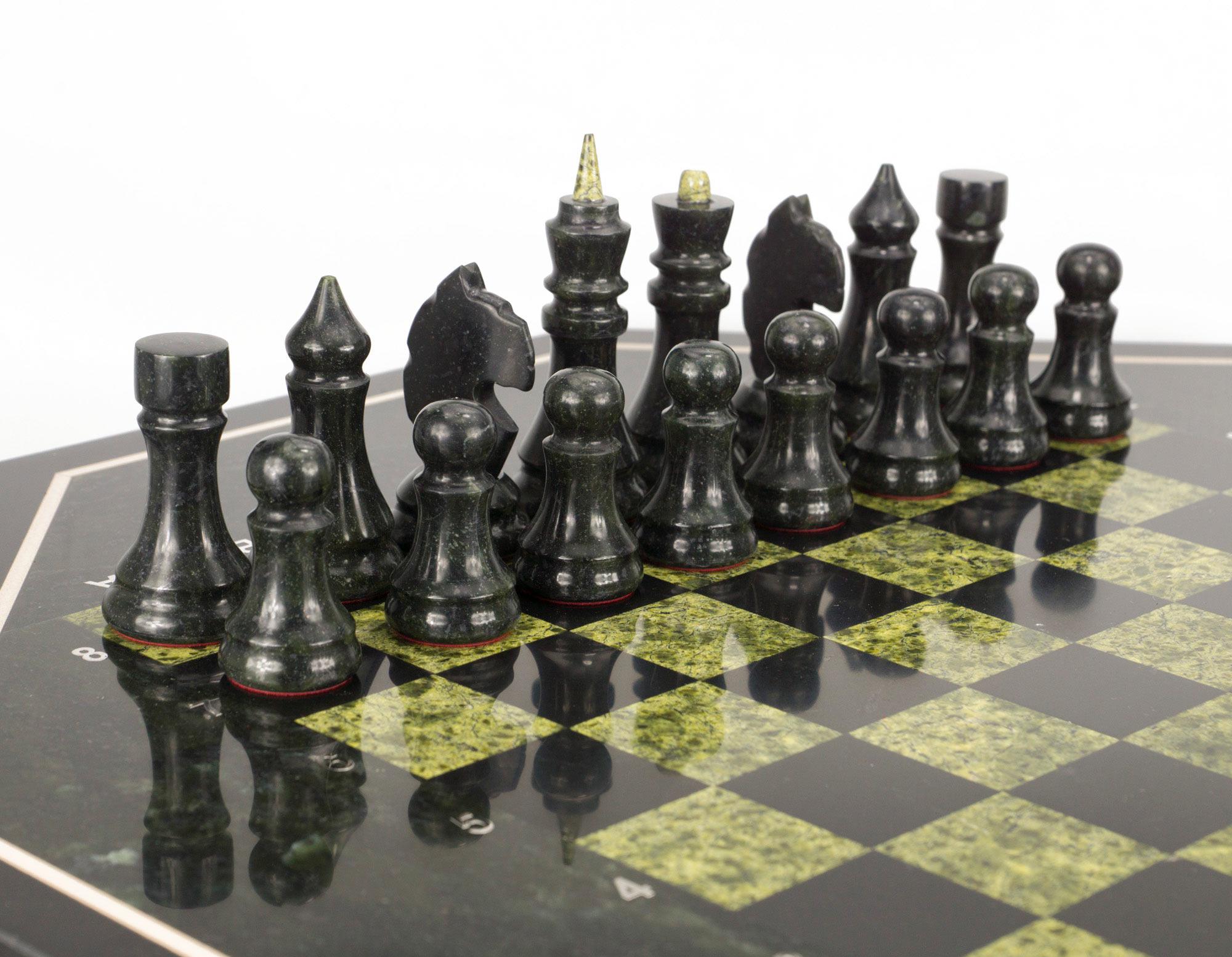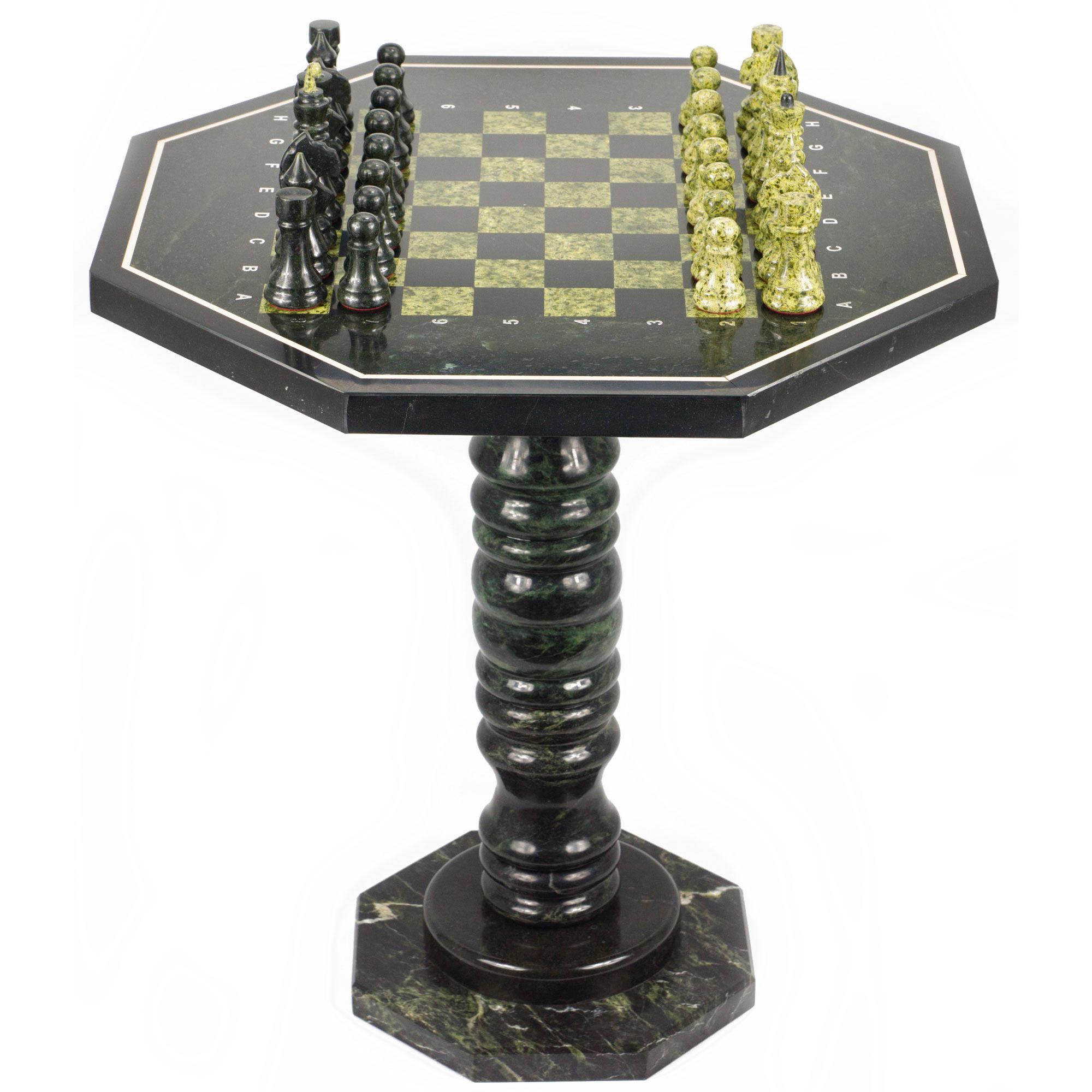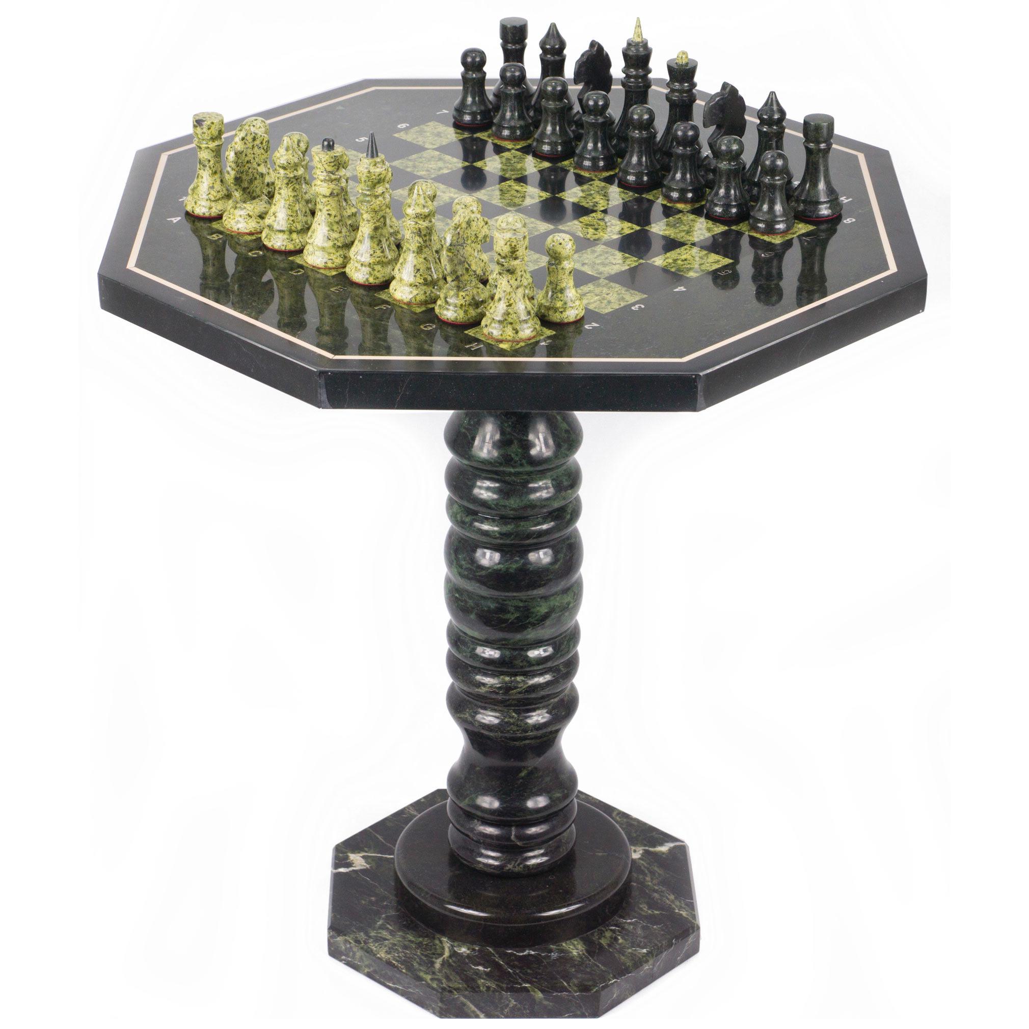 Шахматный стол с каменными фигурами змеевик 600х600х620 мм . Вес 45000 г Размер стол 60х60х62 см, клетка 4,5х4,5 см, высота фигур: пешка 6 см, король 10 см Материал стол и фигуры из змеевика  развернуть описание ▼