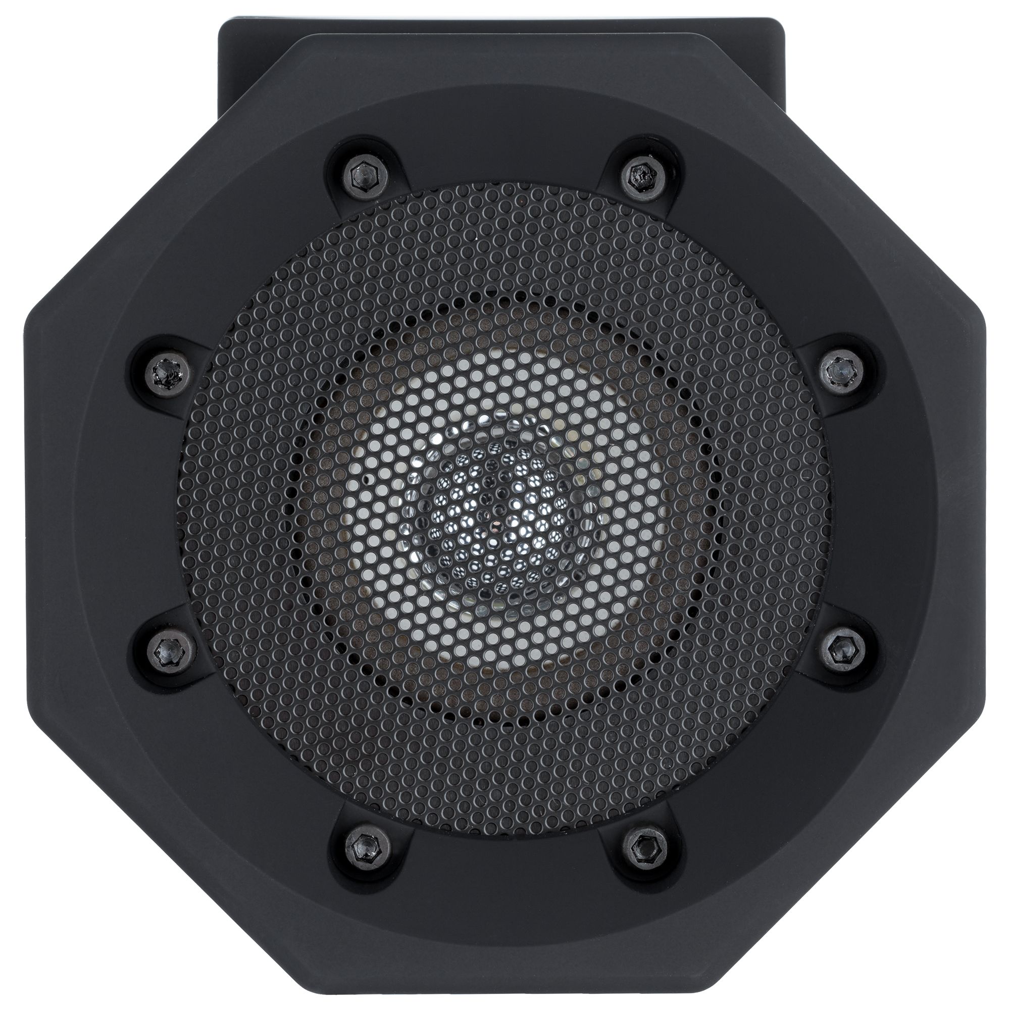 Стильное решение корпуса в форме классического восьмиугольного динамика с приятным на ощупь покрытием софт-тач не останется незамеченным.