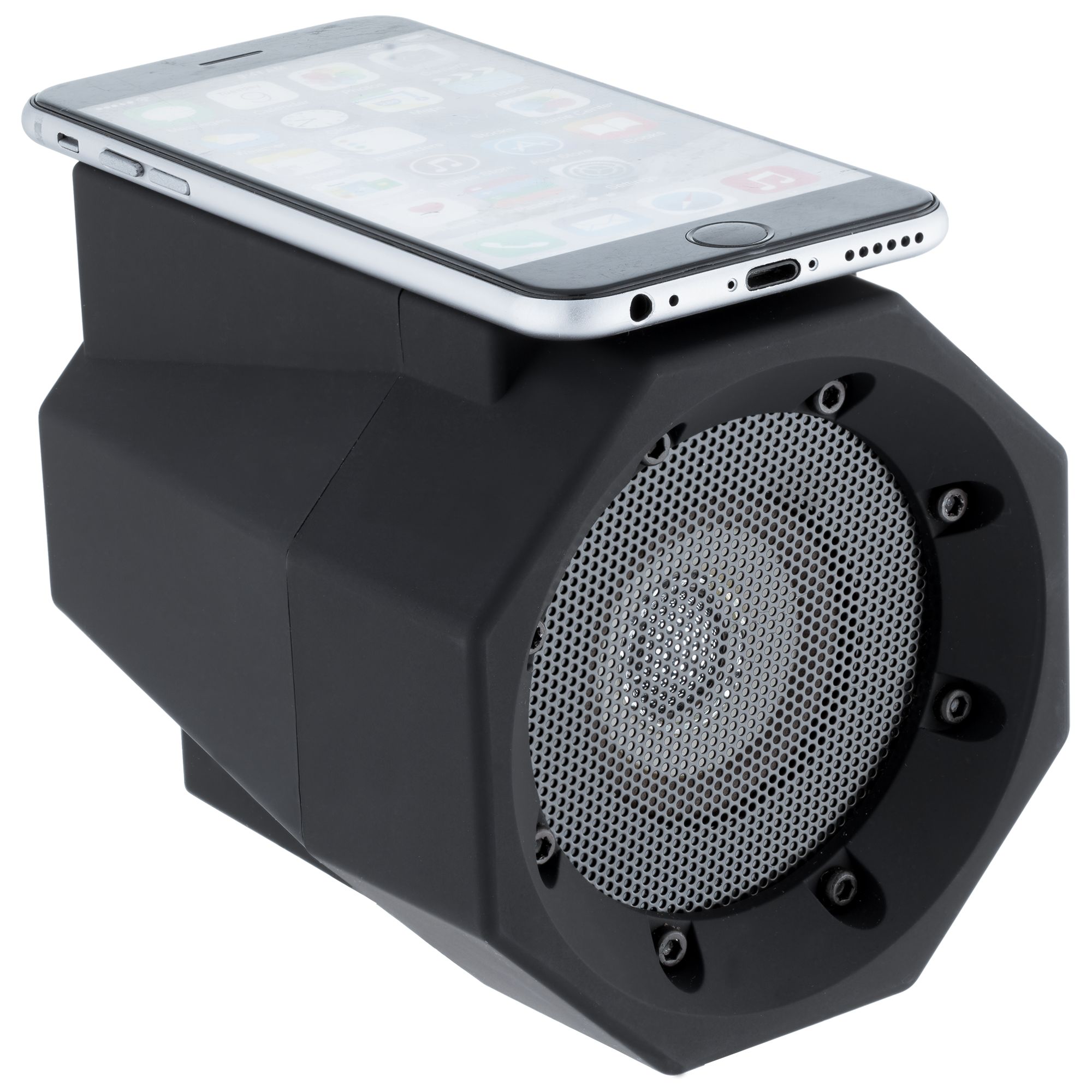 Теперь не требуется проводное соединение или сопряжение устройств для прослушивания музыки — просто включите любимые треки на смартфоне или планшете и положите его на верхнюю часть колонки. Индукционные датчики устройства улавливают звук, усиливают его и воспроизводят через встроенные динамики.