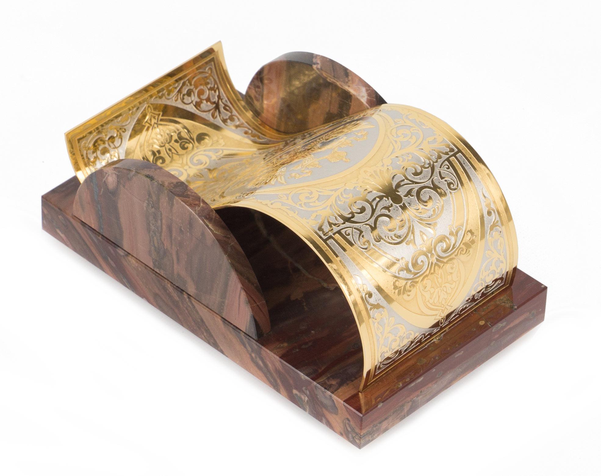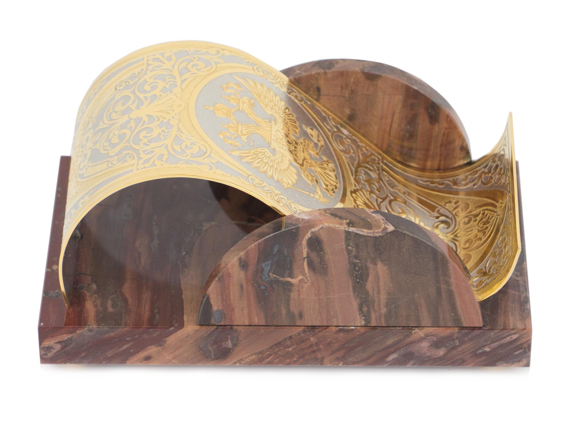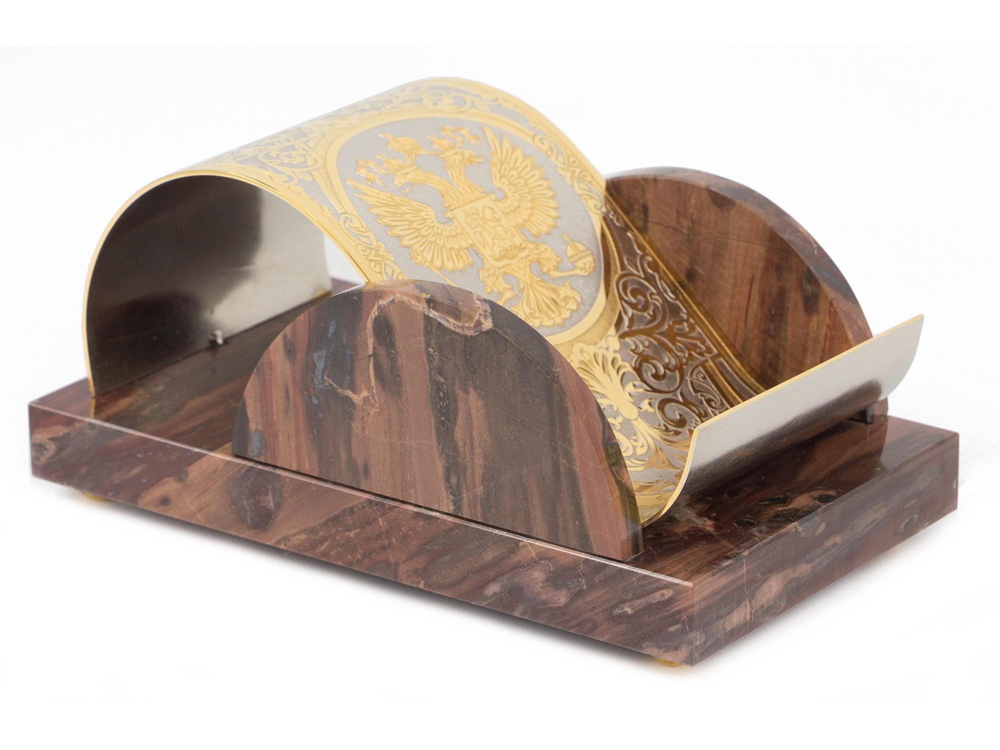 Подставка под телефон "герб россии" яшма 155х90х75 мм 1590 гр.