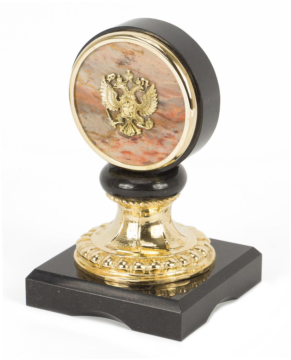Подставка "герб" яшма долерит бронза 9х9х15 мм 1250 гр.
