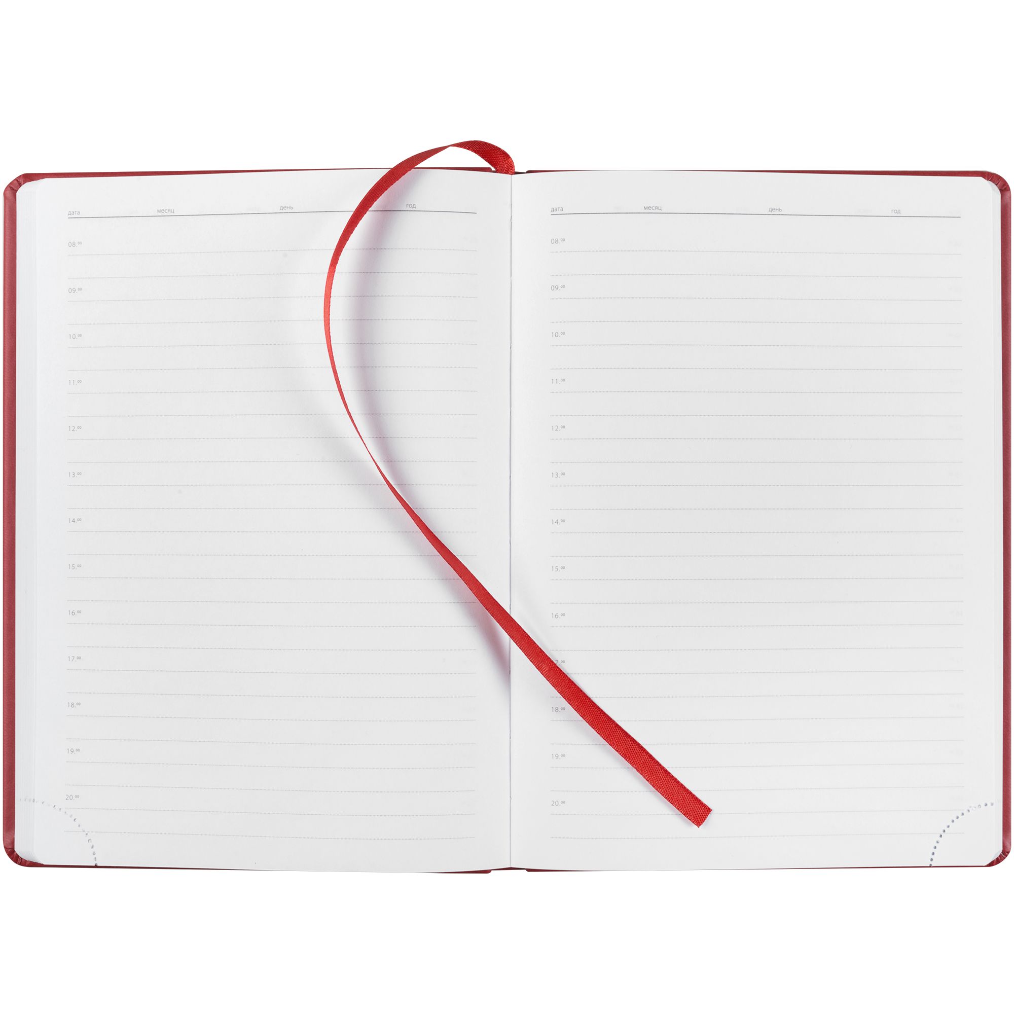 Ежедневник new brand, недатированный, красный. Размеры 15х21 см Материал искусственная кожа Вес (1 шт.) 500 г Транспортная упаковка 43,0x32,0x17,0 см Вес 16,00 кг Объем упаковки 0,023 м? Количество в упаковке 32 шт. Виды нанесения D-Шелкография (1 цвет) SH-Шелкография (1 цвет) T1-Тиснение бесцветное T2-Тиснение фольгой (1 цвет) UV-УФ-печать В ежедневниках блоки могут быть с перфорацией уголка и без перфорации. Ежедневник с твердой обложкой, выполнен из материала Brand, красный PP, дополнен ляссе в цвет обложки. Блок 985: Кол-во страниц — 256; Бумага — белая, плотность 70 г/м?; Форзац и нахзац — белого цвета.