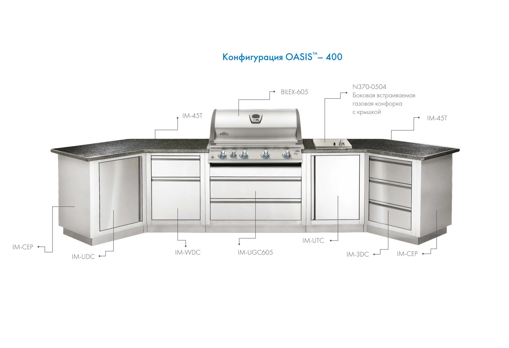 Модульная летняя кухня Oasis 400 с грилем Napoleon Bilex-605 для сада
