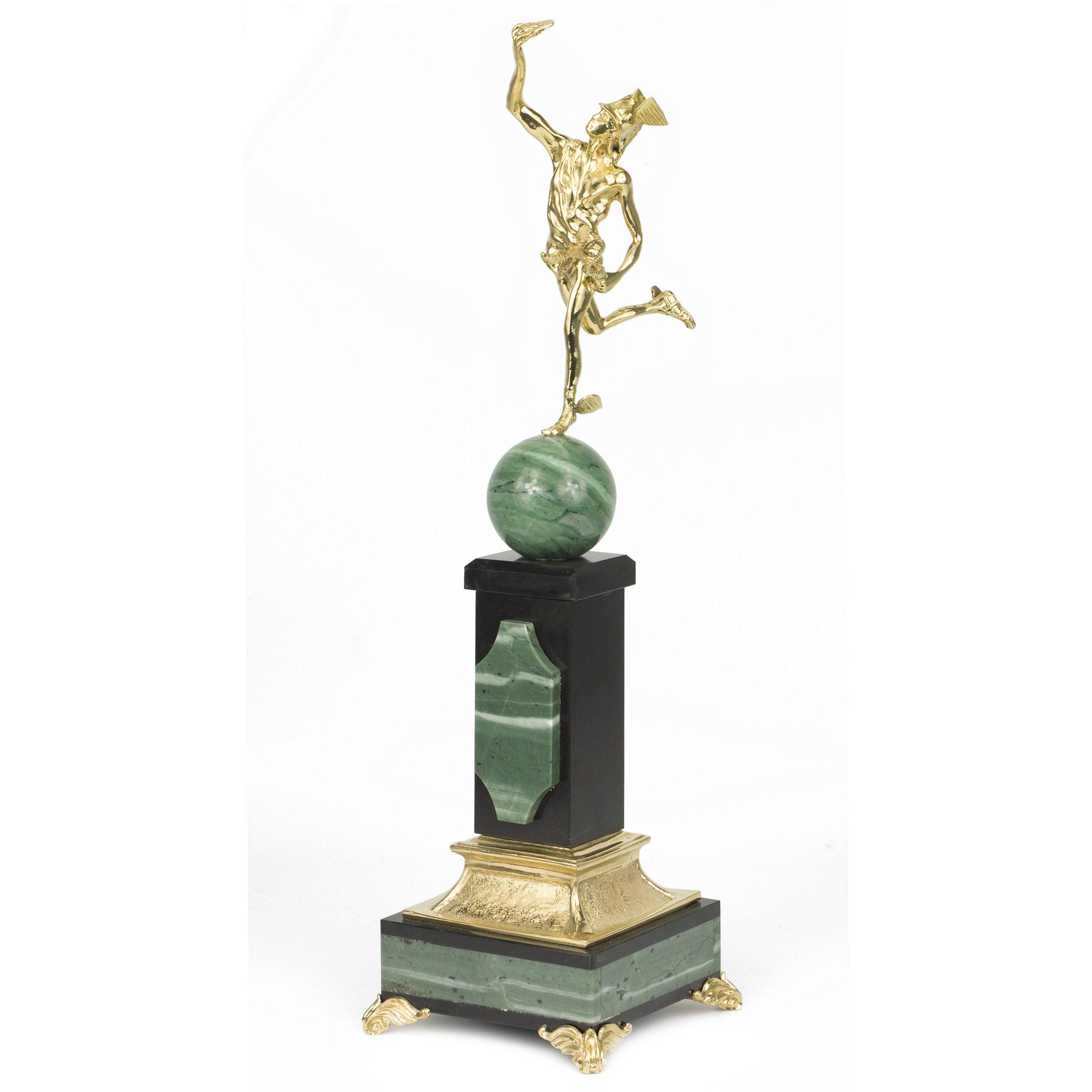 Статуэтка "гермес" офиокальцит змеевик бронза 100х100х360 1850 г