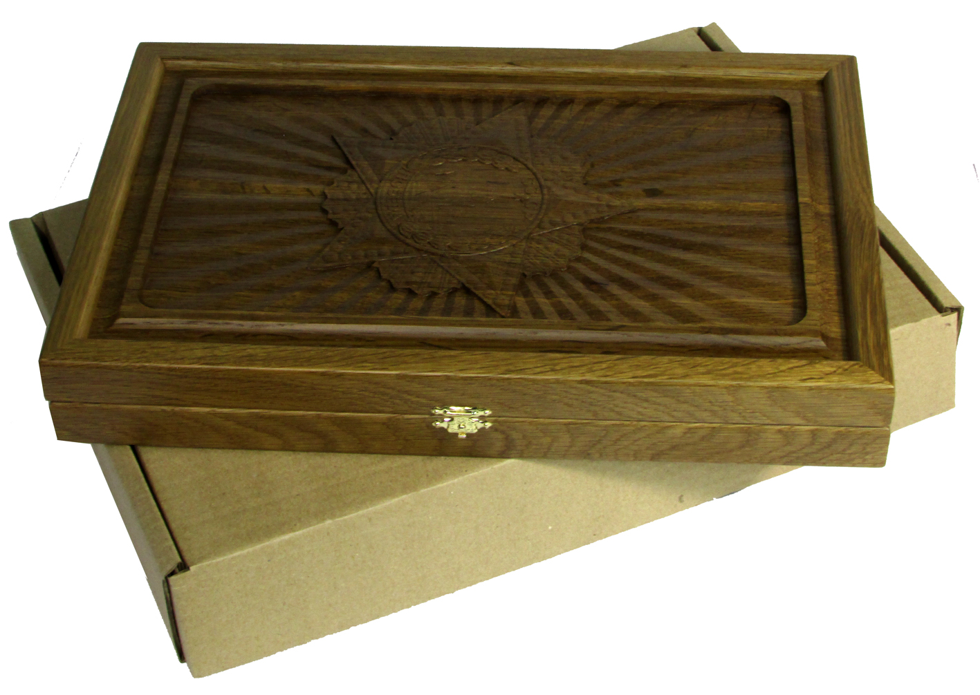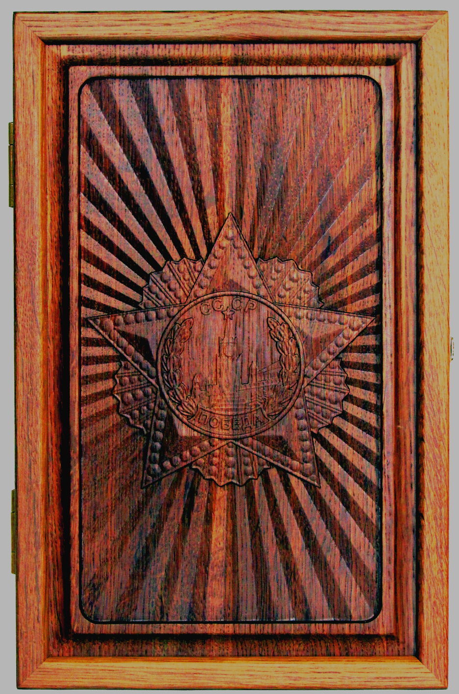 Резные дорожные нарды из массива мореного дуба "орден победы" 36х46. Артикул: [79-14] Наименование: Резные дорожные нарды из массива мореного дуба Орден Победы Размер: 36 х 46 см Описание: Материал: Дуб Технология: Резьба по массивуОдна из лучших досок дорожного размера. Размер не самый маленький (встречаются нарды и меньших размеров), однако нашей целью было создать нарды минимального из УДОБНЫХ размеров. Эта доска соответствует всем основным запросам любителей игры в нарды: - Деревянные фишки из массива граба с углублением по центру легко перемещаются пальцами. Диаметр фишки 19 мм - Возможность выставить все фишки вдоль края поля, что важно при игре в длинные нарды - Удобные ячейки из массива мореного дуба - Ложемент для хранения фишек и костей по краю поля С внешней стороны на лицевой филенке вырезан Орден Победы. На оборотной филенке вырезана доска для игры в шашки. Упаковка: транспортная картонная коробка. ВАЖНО: Нарды будут иметь такой же резной рисунок, у них будет такая же фурнитура и точно так же будут выделены стрелки на поле, НО рисунок дерева неповторим. Поэтому Вы не сможете получить точно такие же нарды, как на сайте. Для того, чтобы игра в нарды доставила Вам еще большее удовольствие, предлагаем заменить фишки штатной комплектации на изысканные фишки из экзотического самшита и золотистого розового дерева, диаметром 19 мм, которые помогут дополнить эту игру еще и замечательным звучанием драгоценных пород деревьев.