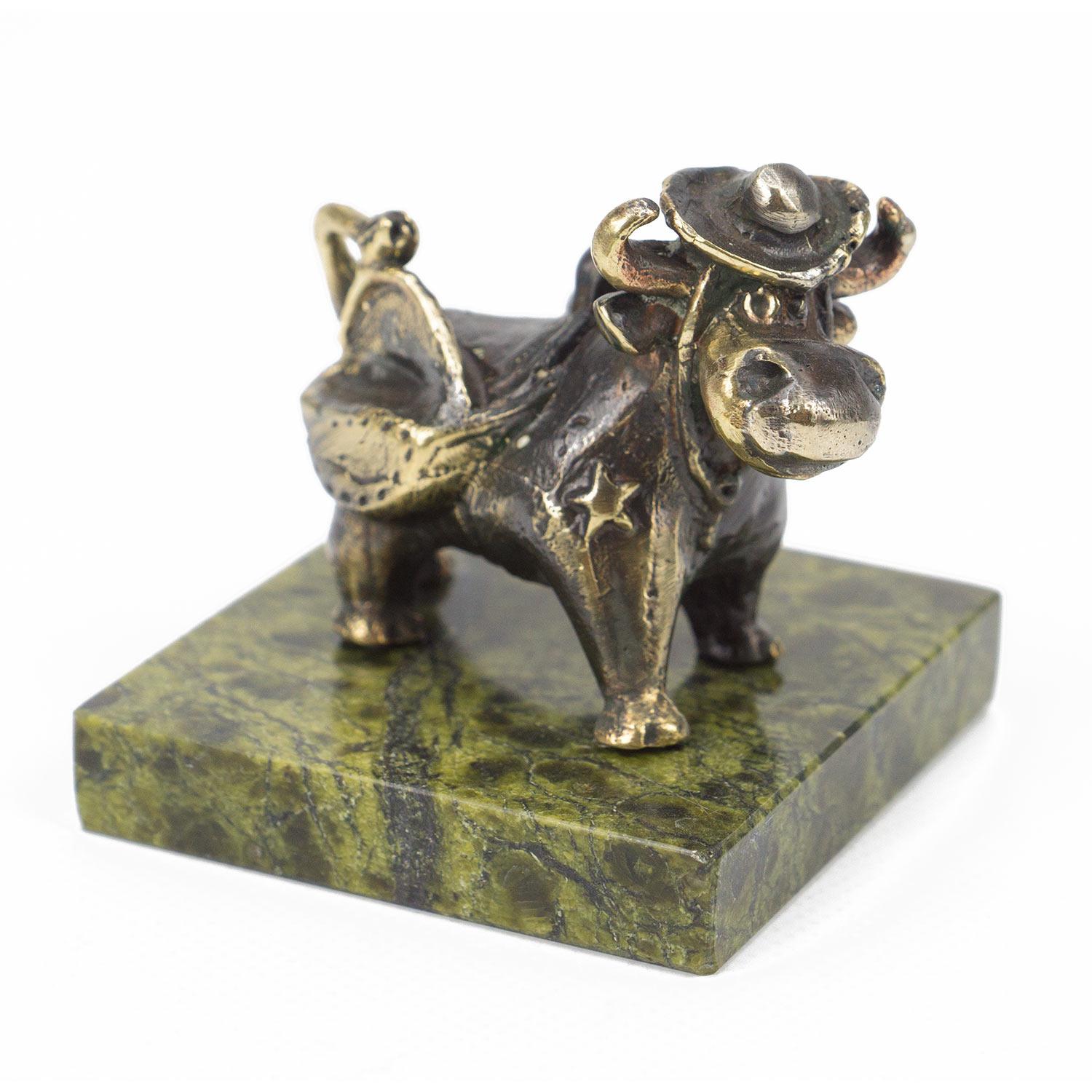 Статуэтка "бычек шериф" бронза змеевик 50х50х50 мм 160 гр. Статуэтка "бычек шериф" бронза змеевик 50х50х50 мм 160 гр.