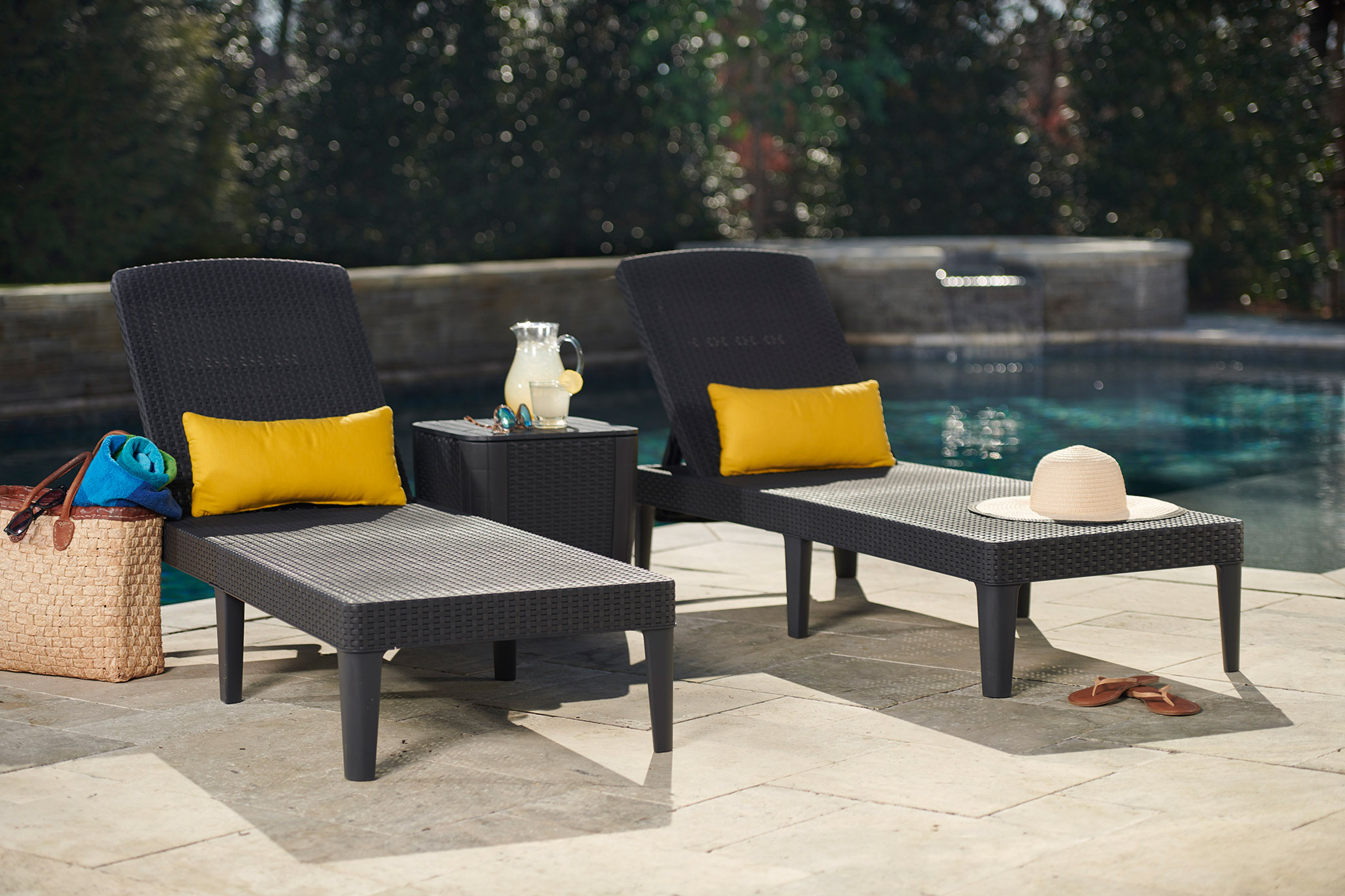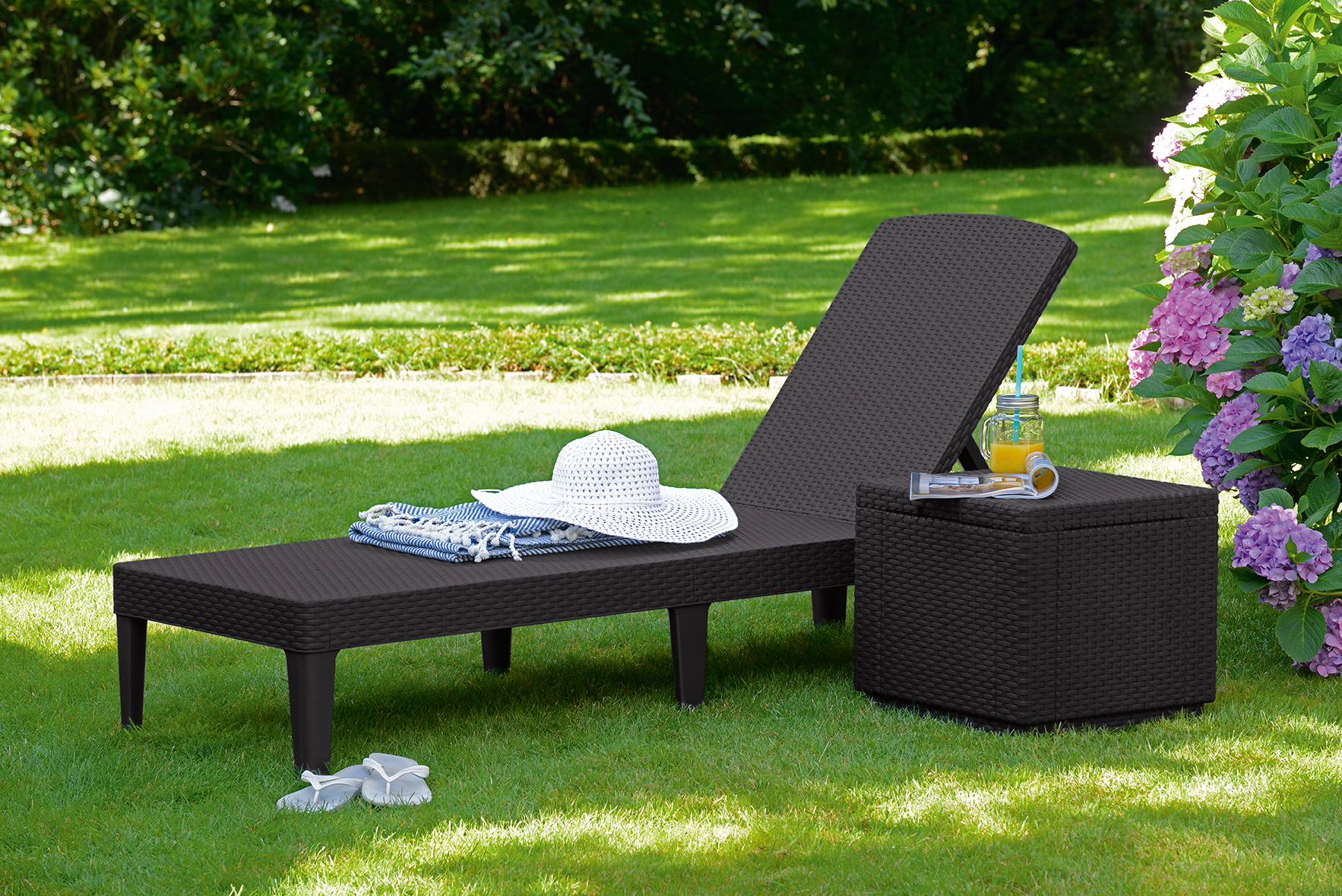 Шезлонг складной с подголовником Keter Jaipur коричневый, садовая мебель