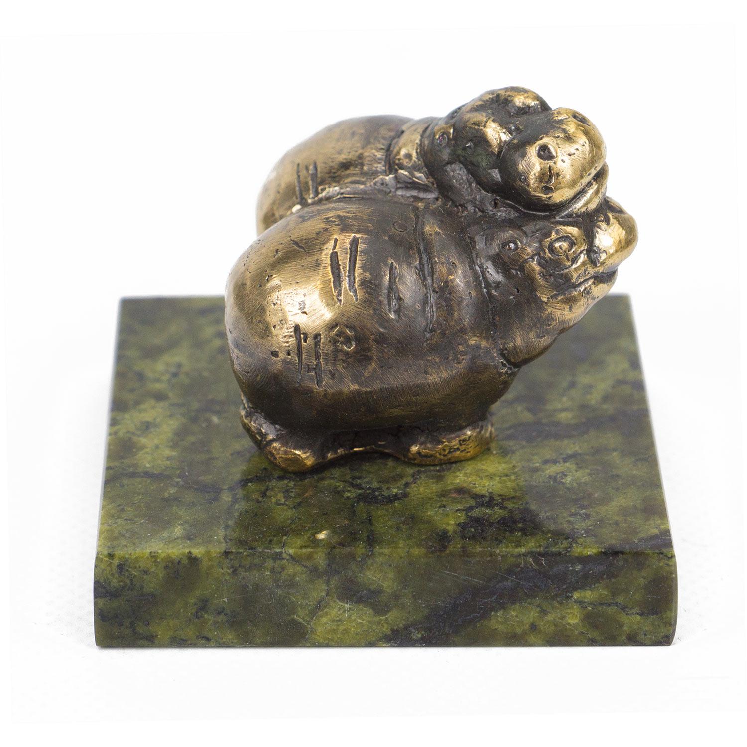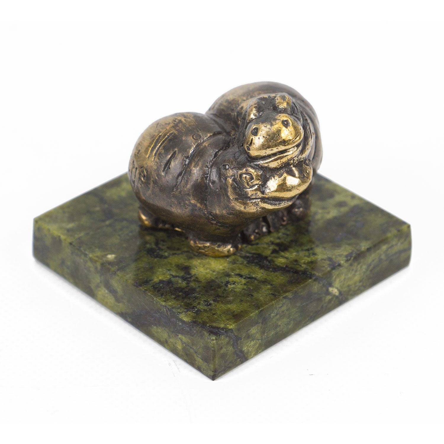 Статуэтка "пара бегемотов малые" бронза змеевик 50х50х45 мм 200