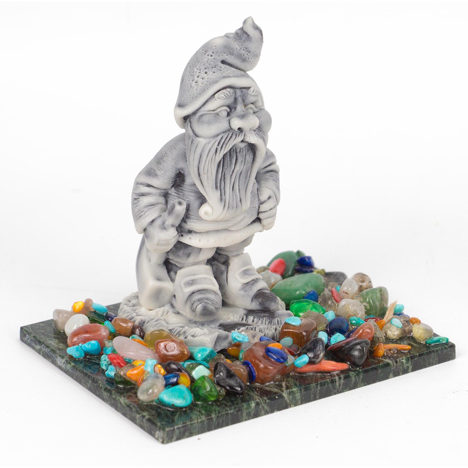 Сувенир "гном с киркой" змеевик мрамолит самоцветы 100х80х95 мм