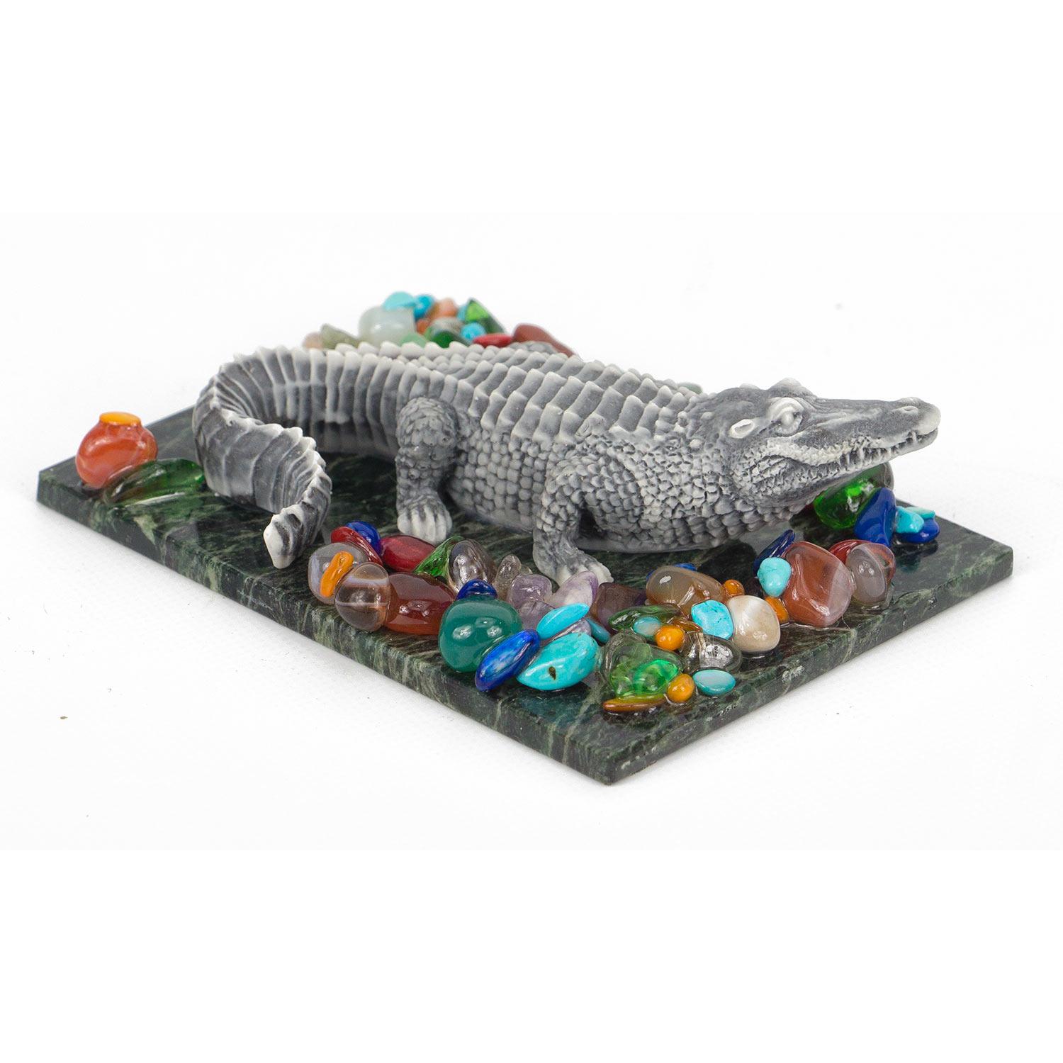 Сувенир "крокодил" змеевик мрамолит самоцветы 100х80х25 мм 160 г.