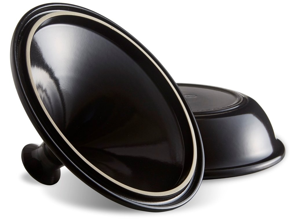 Тажин керамический emile henry черный 3 литра 32 см. Бренд: Emile Henry Страна: Франция Описание: Благодаря конусообразной форме крышки, пар, поднимающийся от готовящегося блюда, многократно конденсируется в верхней ее части и спускается вниз, поэтому мясо, рыба и овощи становятся очень нежными и приобретают особый вкус. Позвольте легким и ароматным соблазнам увлечь вас: тажин из курицы с лимоном, тажин из морепродуктов, вегетарианский тажин… Доверьтесь интуиции и инстинктам, как это делают марокканцы, и создайте свой собственный рецепт тажина! 32-сантиметровый тажин рассчитан на 8-12 порций. Его можно помещать в духовку, в микроволновую печь и на любой источник прямого нагревания (на индукционный диск для индукционных плит). Как и любую другую продукцию Emily Henry, тажин можно помещать в посудомоечную машину, не боясь, что со временем он потеряет свой цвет.