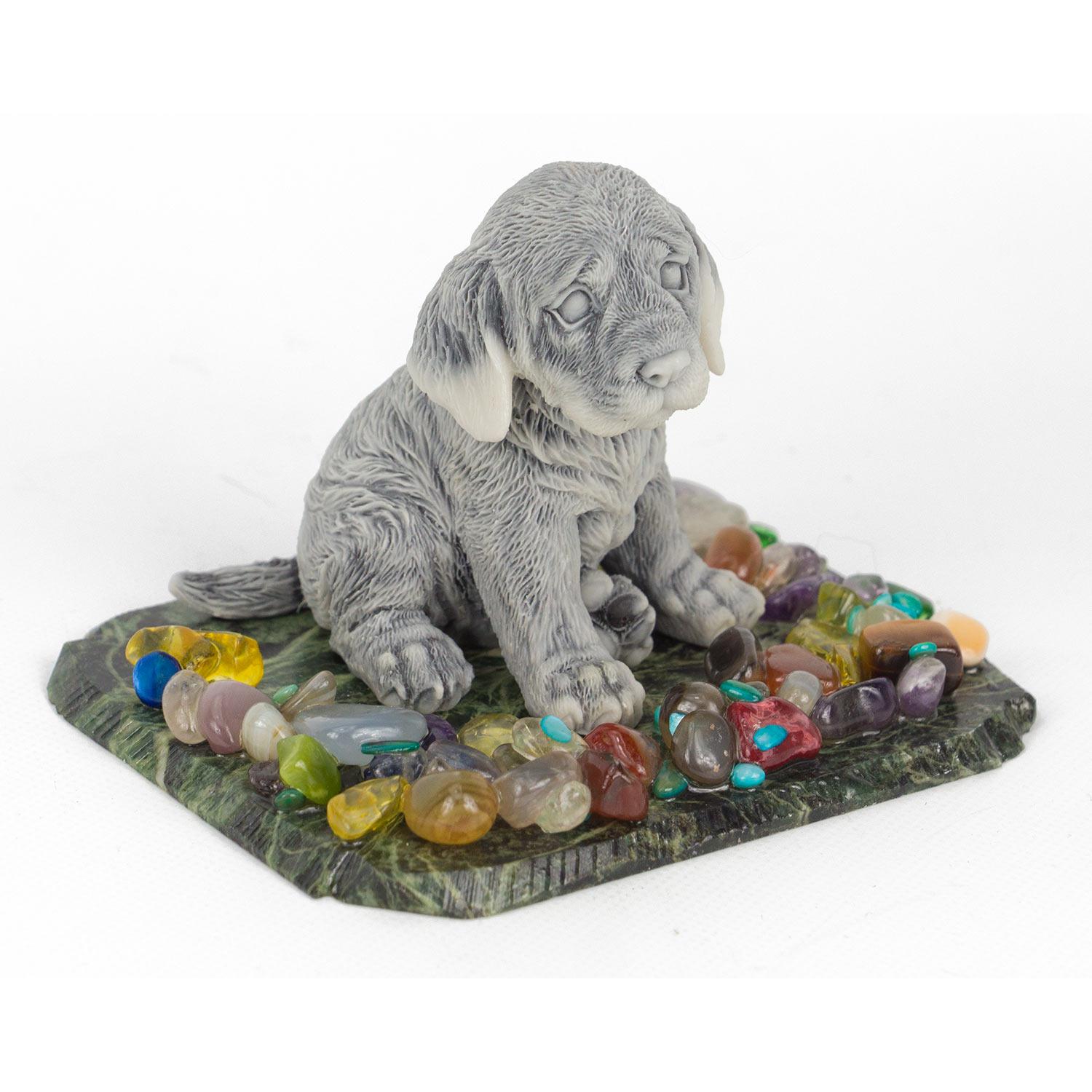 Сувенир "щенок сидит" змеевик мрамолит самоцветы 100х80х60 мм 20