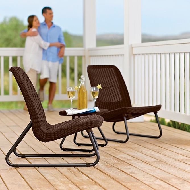 Комплект keter rio patio set коричневый, садовая мебель. Компактный и стильный комплект Rio Patio отлично подходит на роль мебели для балкона, а так же для оформления зоны отдыха у бассейна. Металлические ножки обеспечивают устойчивость и амортизацию сидящего, маленький столик идеален для стаканов с коктейлем. Словом комплект мебели Rio Patio идеален для отдыха вдвоем Пластиковая мебель Rio Patio собирается за 5 минут, а служит долго. Благодаря стойкому к высоким температурам полипропилену, цвета не выгорают и не бледнеют. Кресло, см 77,5 Х 54 Х 76 Журнальный стол, см 38 Х 38 Х 36 Материал каркаса Углеродистая сталь Материал изделия Полипропилен Страна бренда Израиль