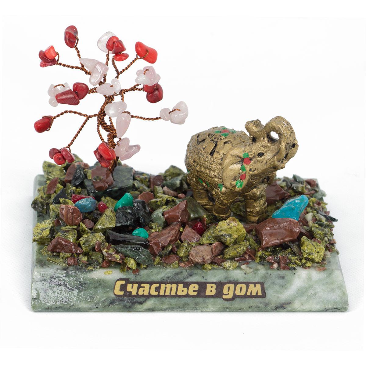 Сувенир "слон с деревом" змеевик 125х90х90 мм 480 гр.