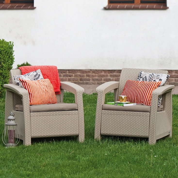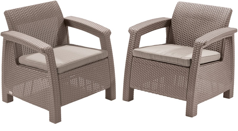 Комплект keter corfu duo капучино, садовая мебель. Благодаря садовой мебели Corfu Duo вы сможете составлять комплекты для сада в любых количественных сочетаниях, так как кроме кресел в продаже двухместный диван Корфу, трехместный диван Корфу, а так же несколько вариантов столов: кофейный столик Корфу, столик-сундук Арика, а так же большой обеденный стол Мелоди. nbsp Вся мебель выполнена из пластика имитирующего искусственный ротанг в двух цветах - коричневом и бежевом. Более того вы сможете так же купить декоративное кашпо, сундук, и все это будет выполнено в одном стиле. nbsp Кресло, см 75 Х 70 Х 79 Материал изделия Полипропилен Страна бренда Израиль Страна производства 3 Вес, кг 22