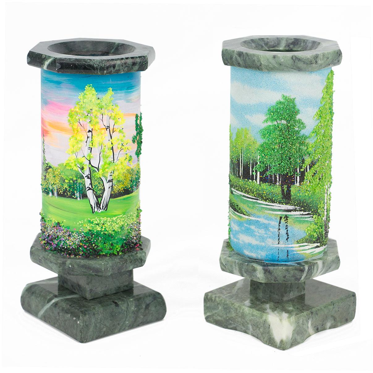 Ваза "лето" малая змеевик 75х75х190 мм 790 гр.