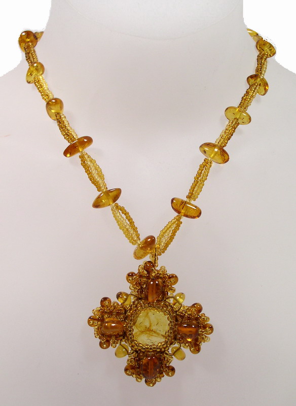 Крестик. Состав: янтарь, бисер. Длина - 50 см. Под заказ длина может быть любой. В случае отсутствия товара на складе срок изготовления и поставки от 3 недель.