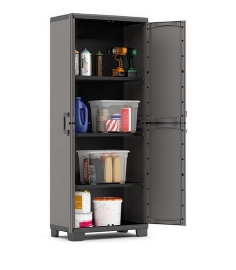 Пластиковый шкаф для сада keter up tall, садовая мебель. Материал- пластик. Шкафы линии Up идеально подходят для наружного использования, например, на террасе или на веранде, а также для внутреннего использования, например, в гараже. Двери представляют новую отделку, которая напоминает природу и ее материалы.Нагрузка на полку 15 кг, предрасположенность к замку, регулируемые полки. Размер, см 68 Х 39 Х 170 Вес, кг 10.7 Цвет серый/ чёрный Артикул производителя 17208281