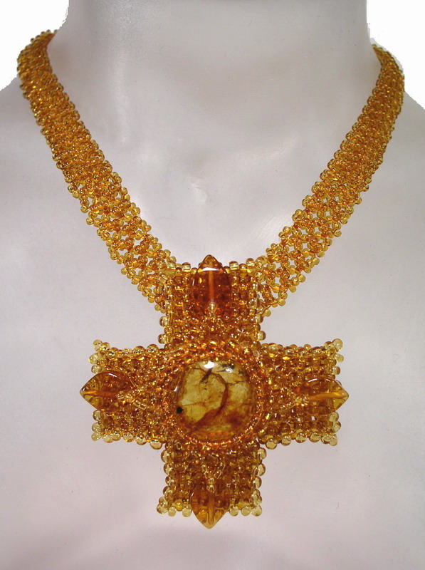 Крестик. Состав: янтарь, бисер. Длина - 45 см. Под заказ длина может быть любой. В случае отсутствия товара на складе срок изготовления и поставки от 3 недель.