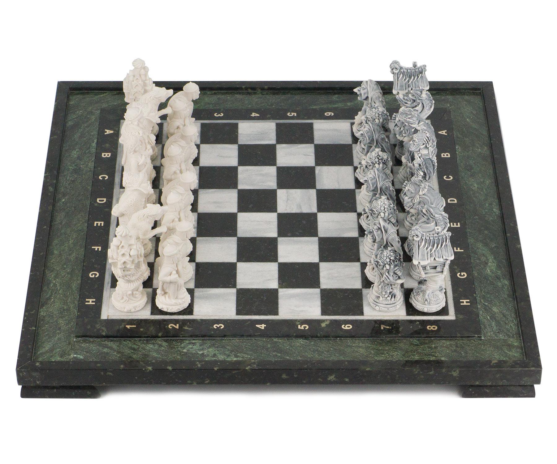 Шахматы "русские сказки" змеевик мрамолит 480х480 мм