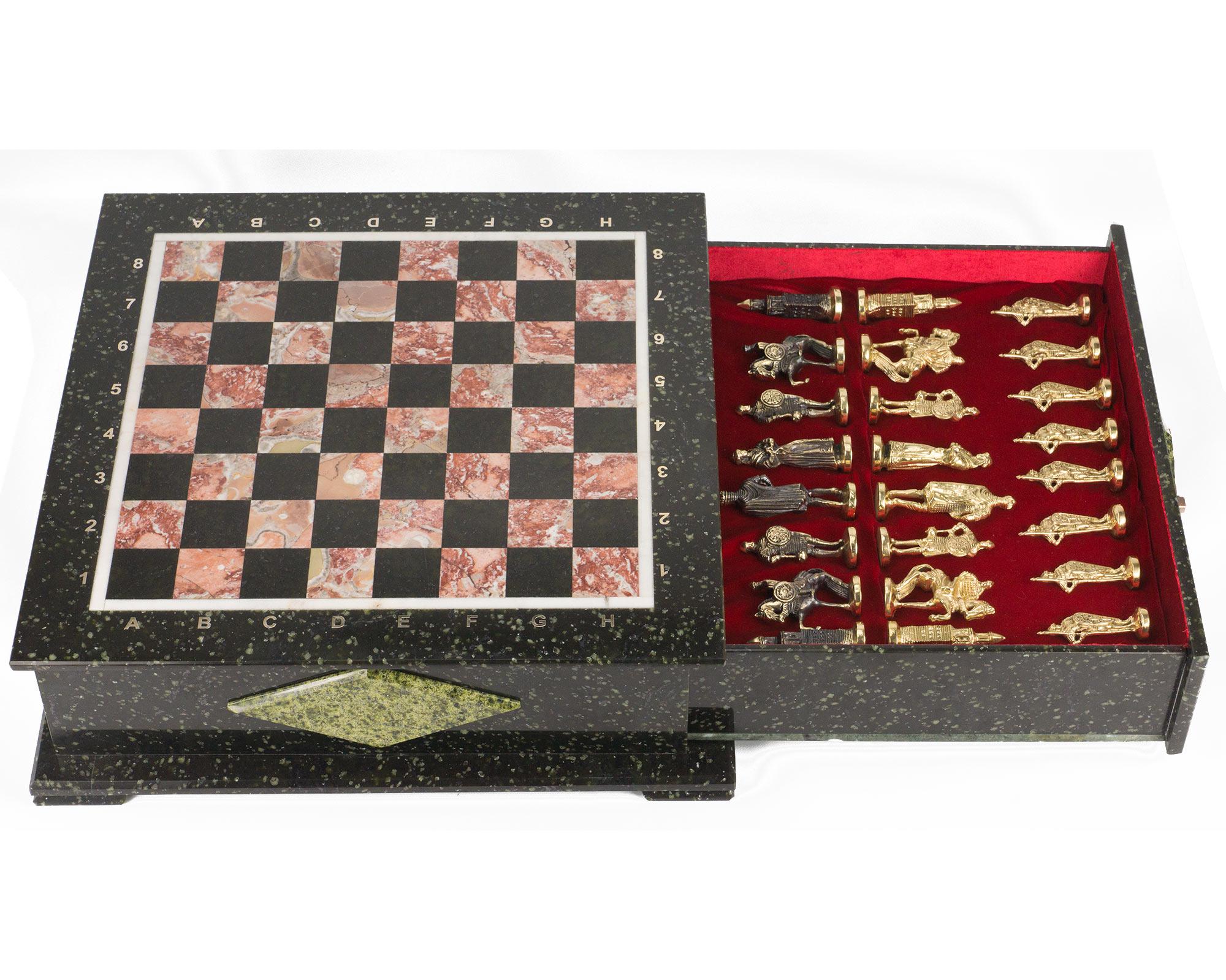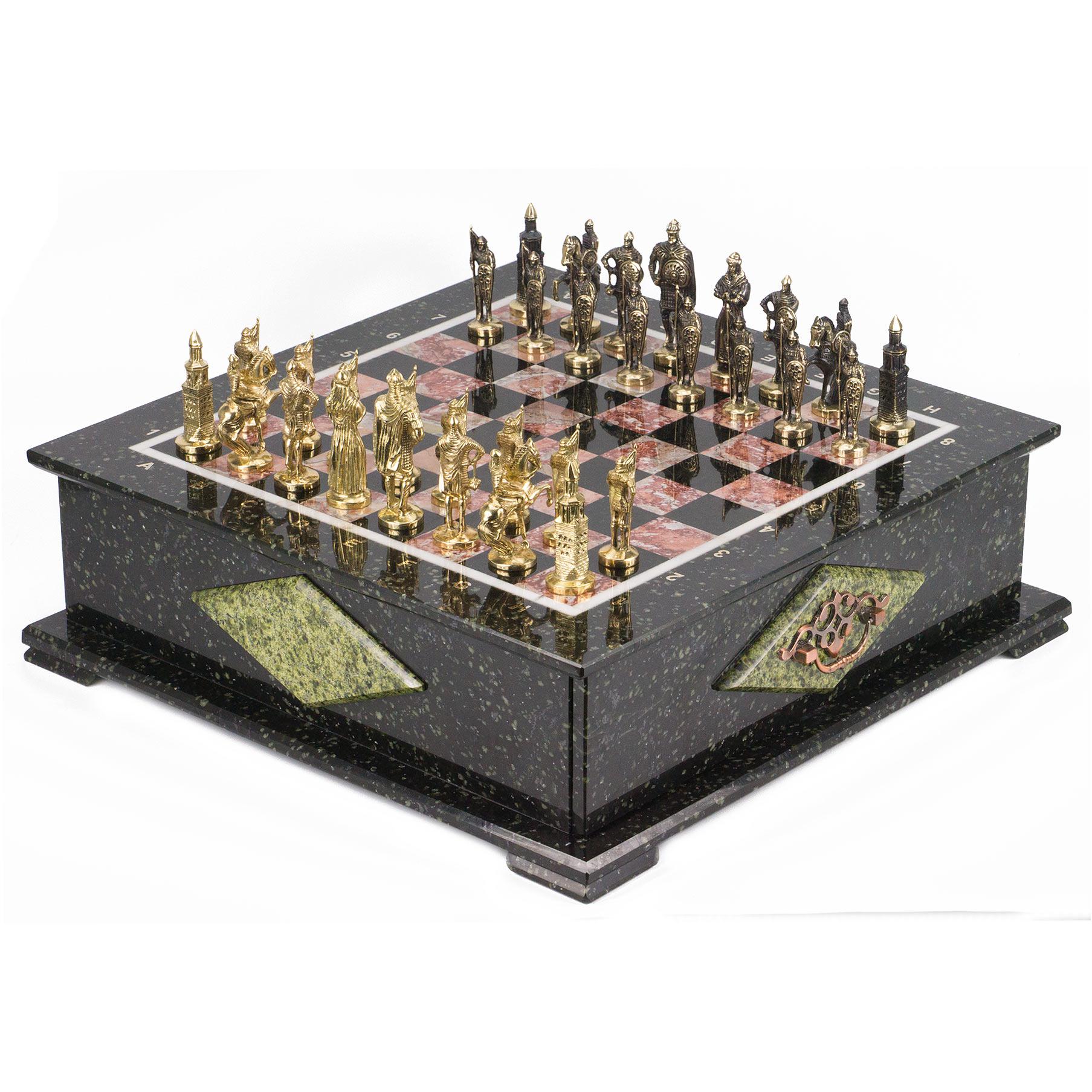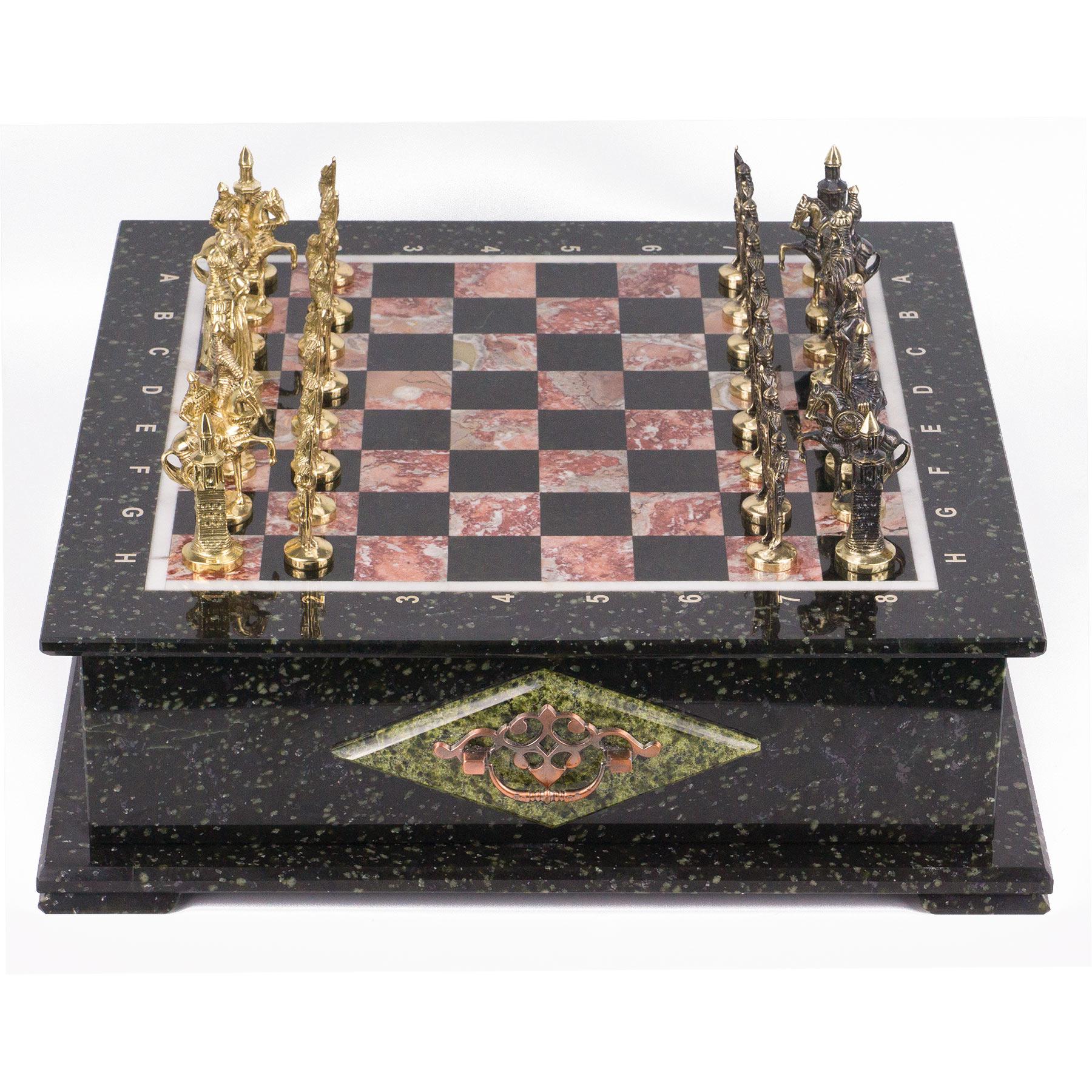 Шахматный ларец фигуры "русские" змеевик 420х420х130 мм 30 кг