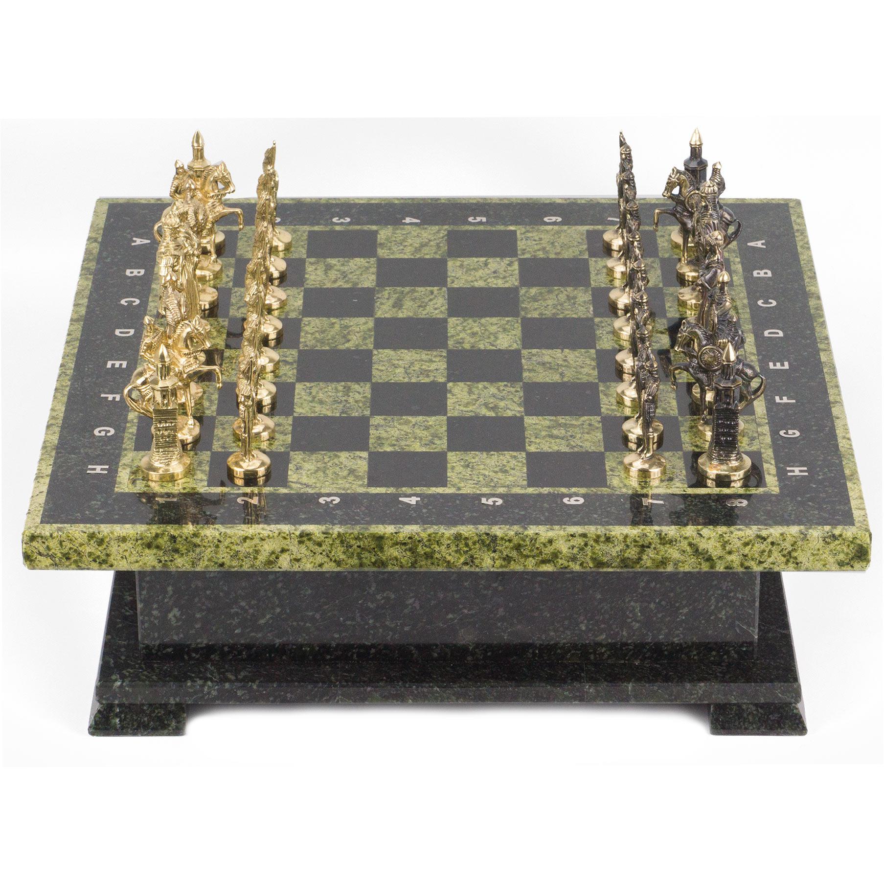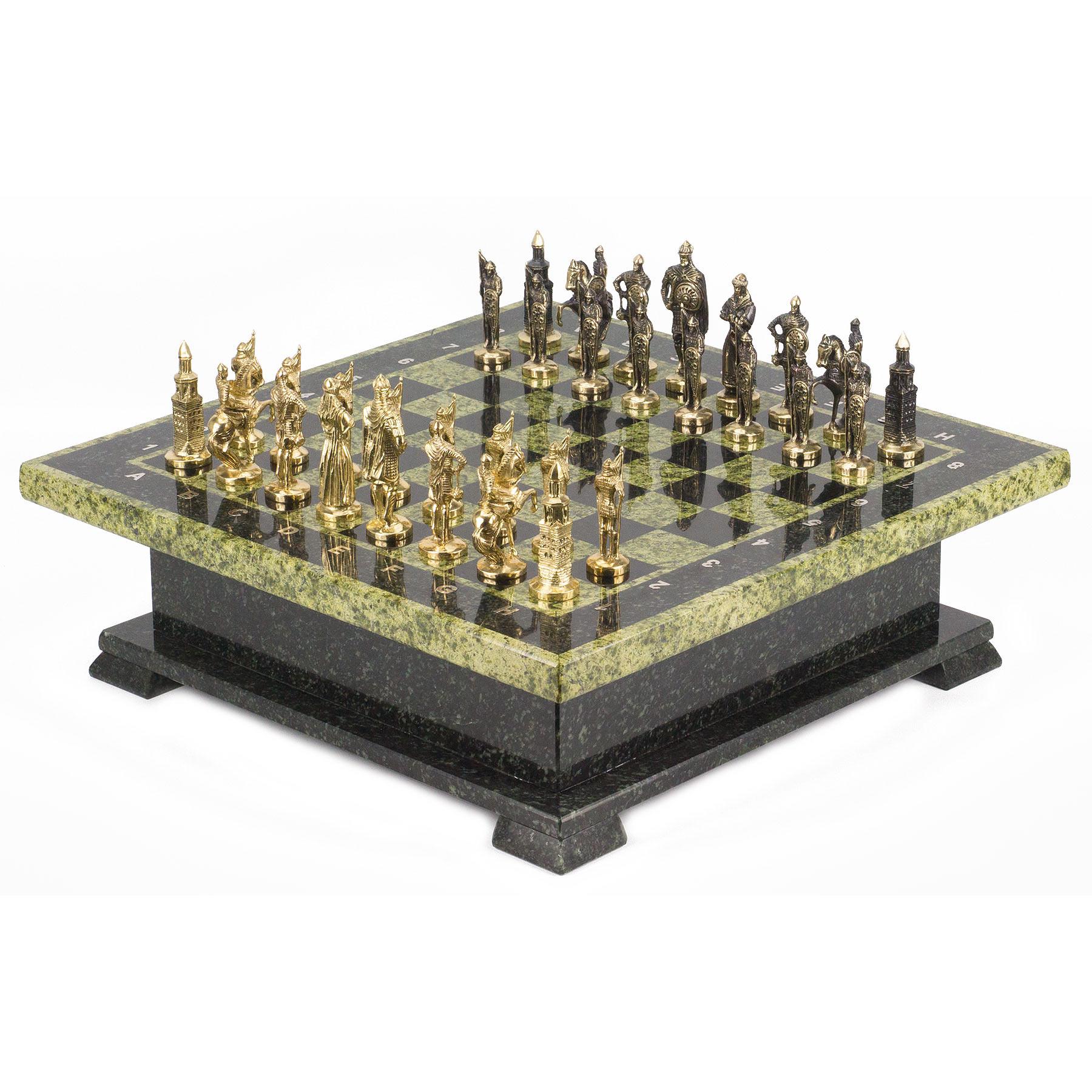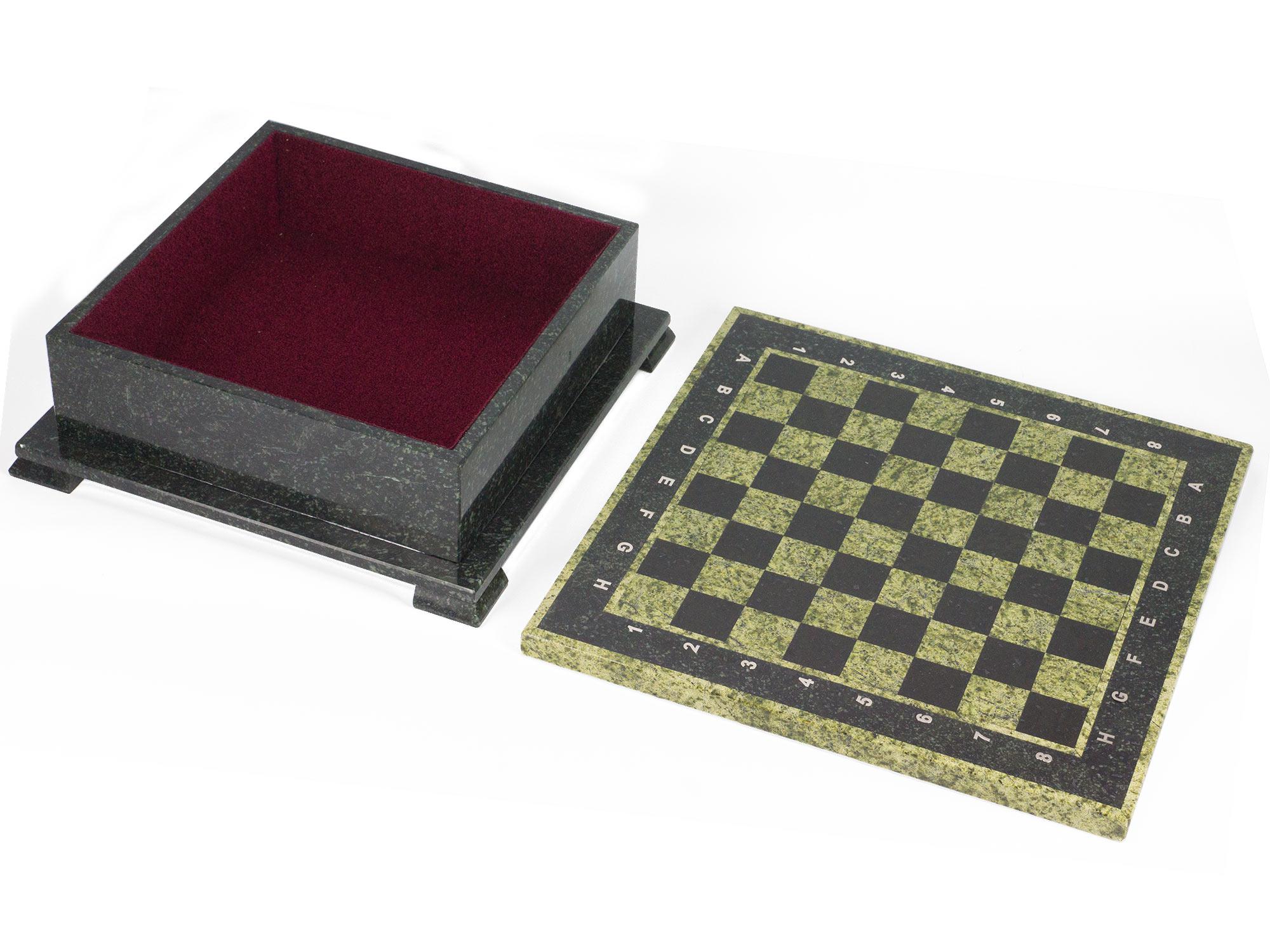Шахматный ларец фигуры "русские" змеевик 420х420х130 мм 22 кг
