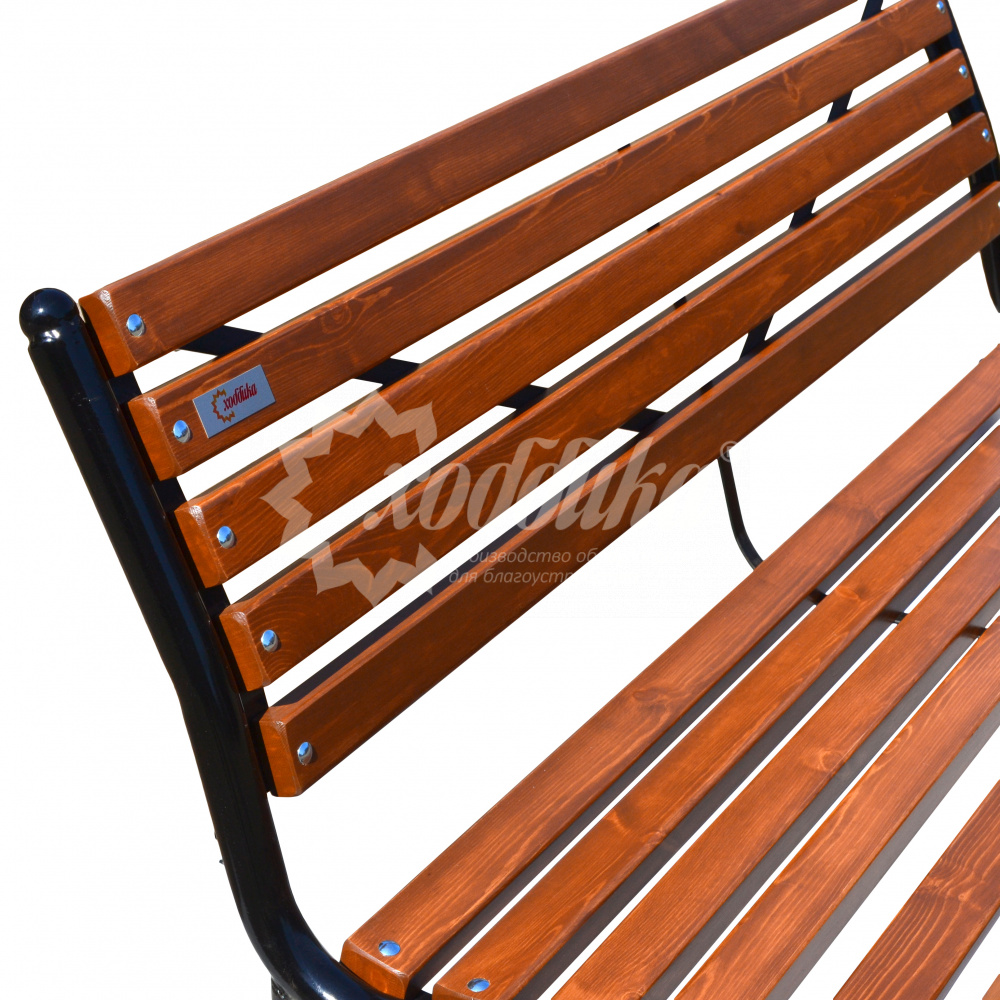 Скамейка «мой двор» 2,0 м.   Подробные характеристики  Скамейка поставляется в разобранном виде!  Скамейка имеет дополнительную защиту от раскачивания.  Материалы:  Опоры: Cталь. Покрыты порошковой полимерной краской. Возможность выбора цвета по каталогу RAL. Стандартный цвет (по умолчанию) - черный.  Сиденье и спинка: Брус из хвойных пород древесины - сосна/ель (варианты исполнения: лиственница, композитные материалы) различного сечения. Огнебиозащитные пропитки + тонировочный состав с антисептиком + два слоя яхтного лака с промежуточным шлифованием. Возможность выбора цвета из палитры.  Фурнитура: Оцинкованная. Возможность выбора цвета фурнитуры по каталогу RAL. Стандартный цвет (по умолчанию) - серебристый. Возможность использования потайной/скрытой фурнитуры.   Технические характеристики:  Габаритные размеры:  Высота: 810 мм  Ширина: 710 мм  Длина: 600 - 3000 мм  Детальные размеры:  Высота сиденья: 440 мм  Ширина сиденья: 400 мм  Длина посадочного места: 600 - 3000 мм  Варианты цвета на выбор:   , груша, еловая зелень, махагон, палисандр, рябина, тик,